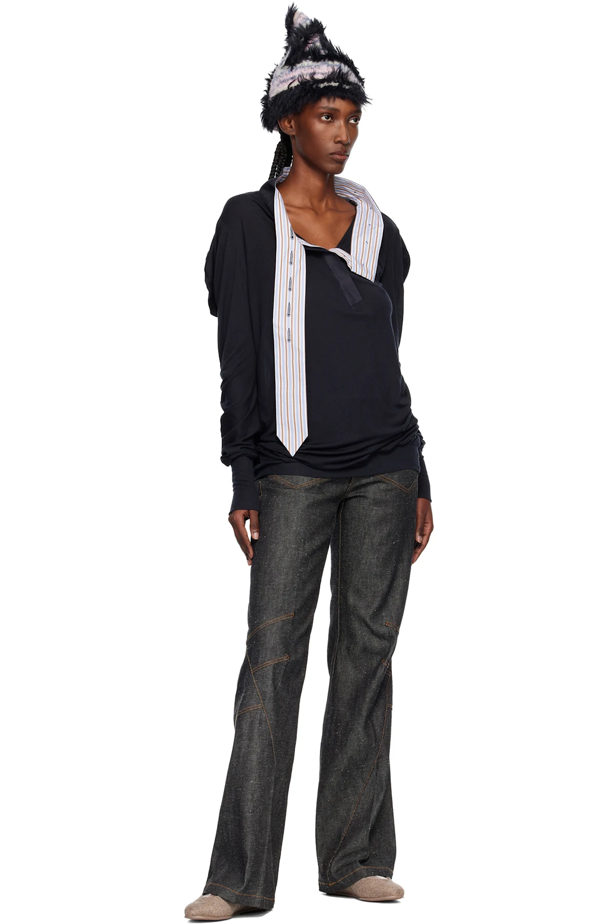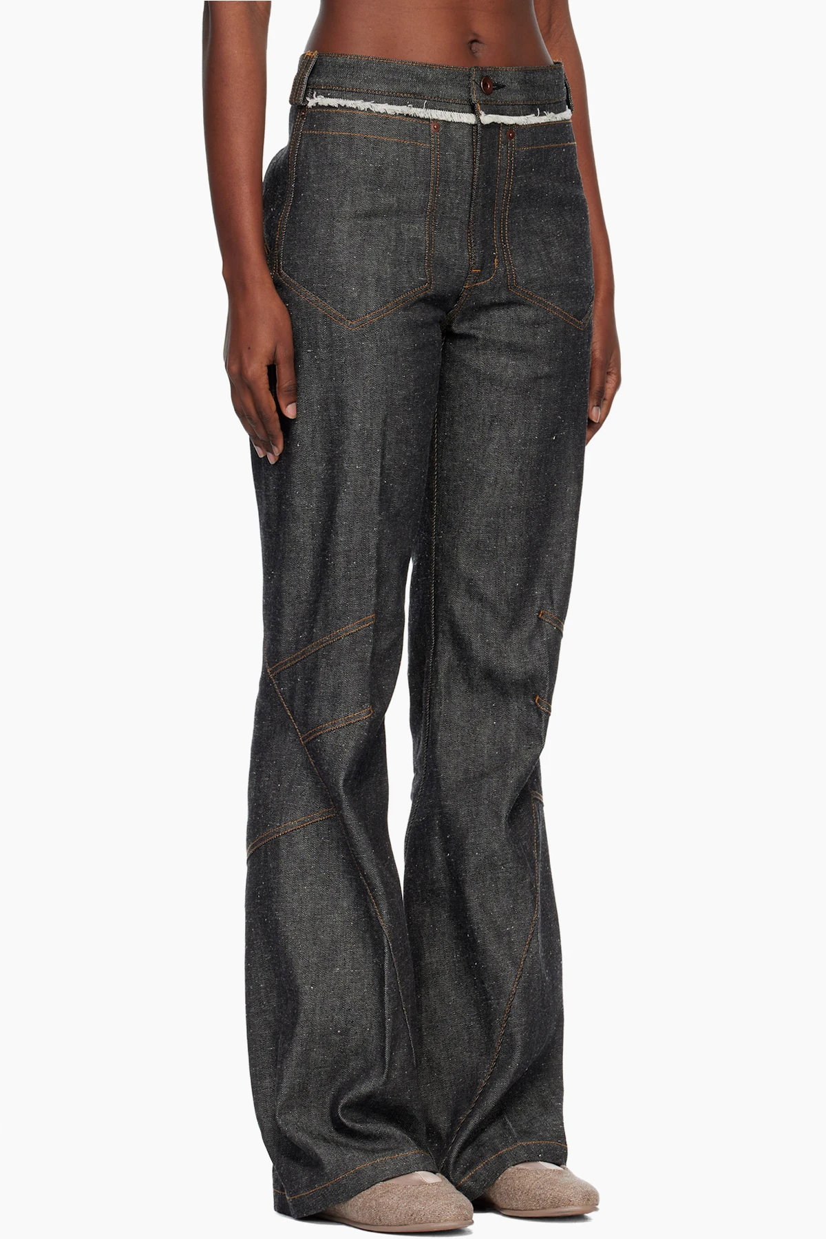 · Frayed edge at front waist