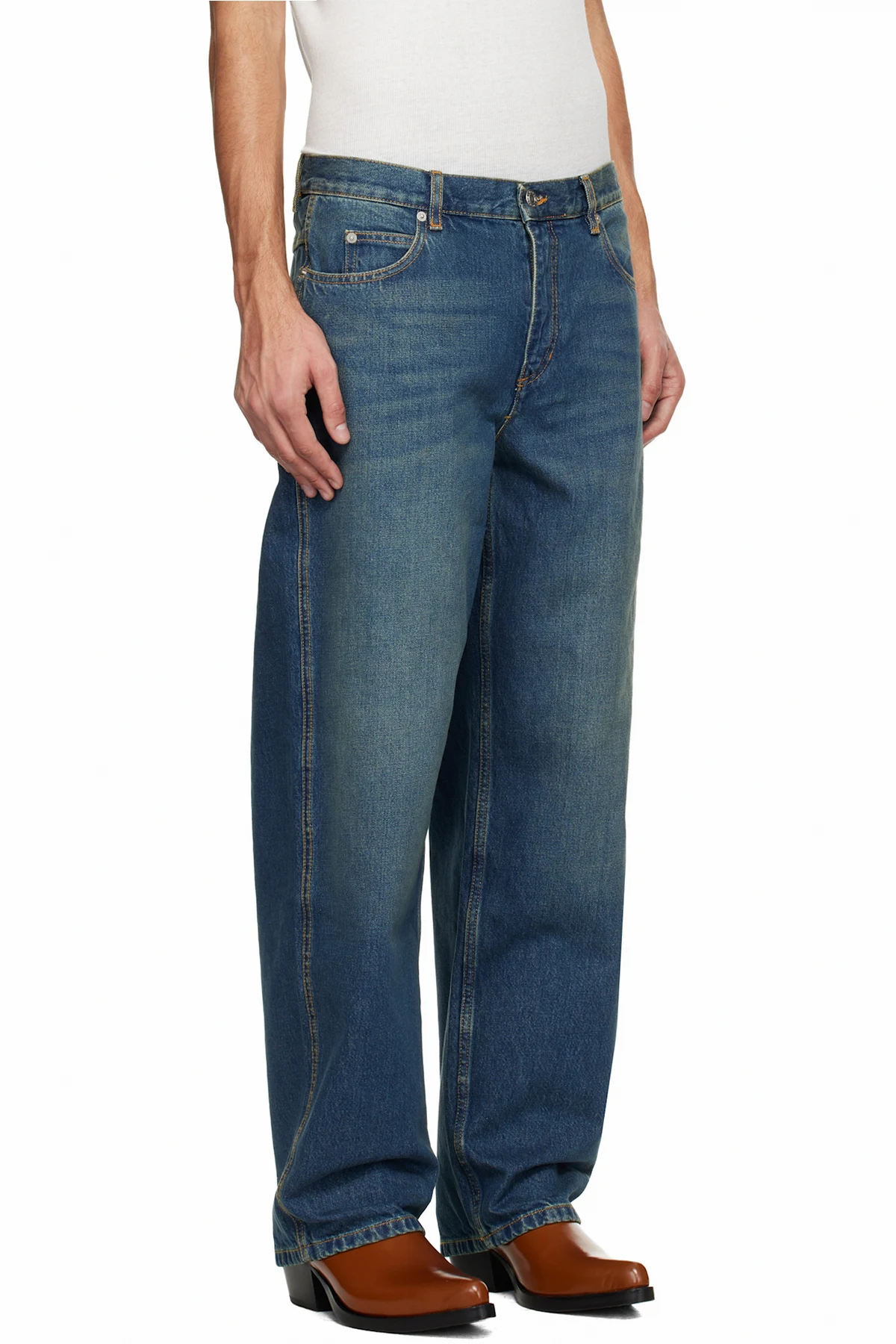 Non-stretch denim jeans.