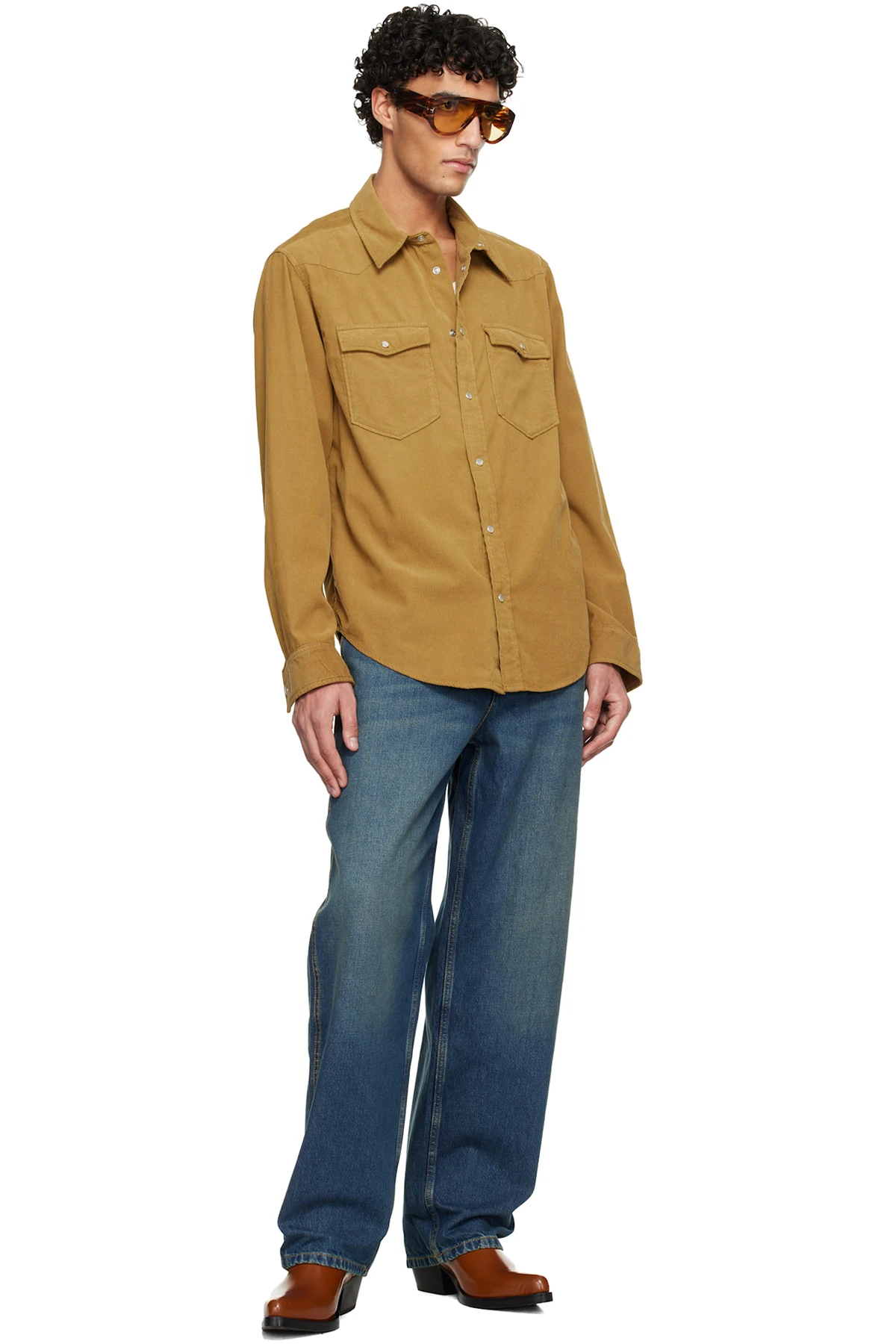 · Contrast stitching in tan