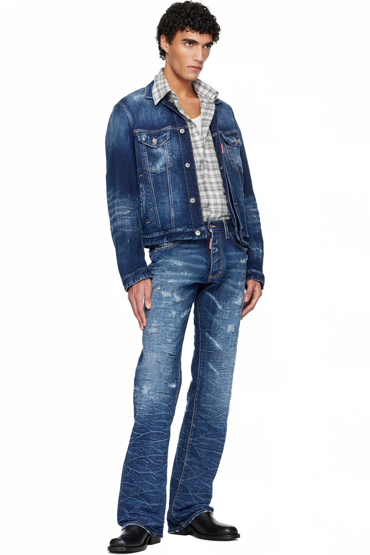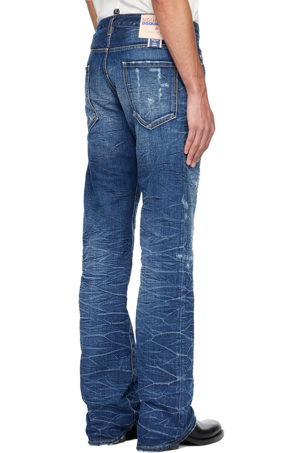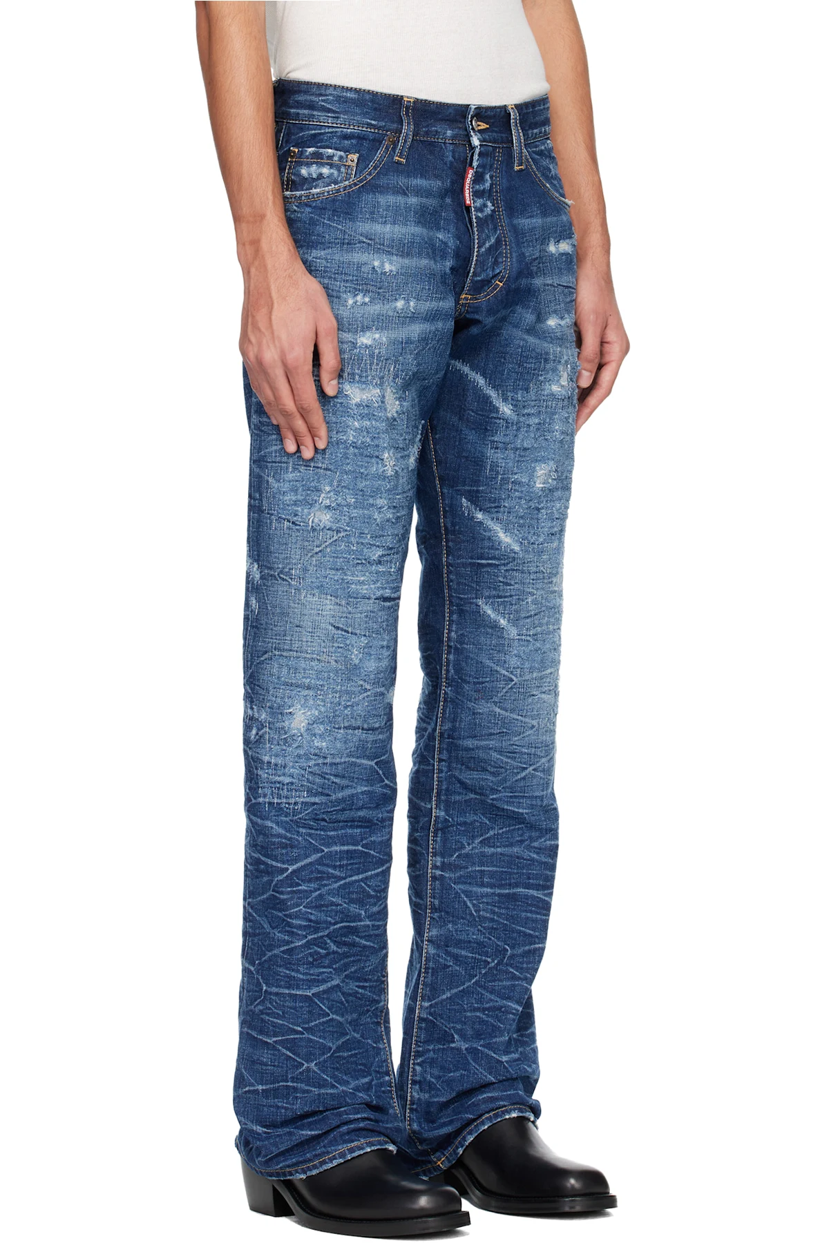 · Fading, distressing, whiskering, and stitching throughout