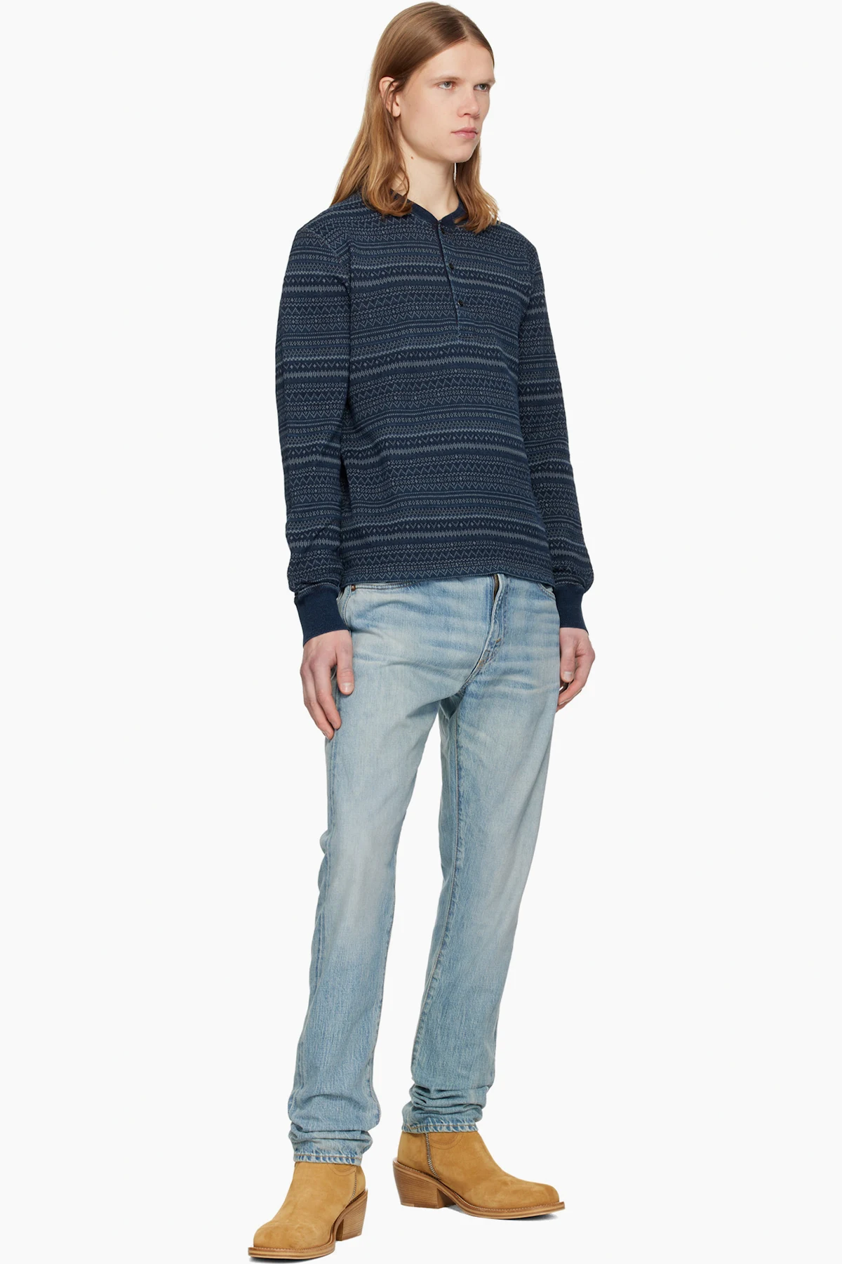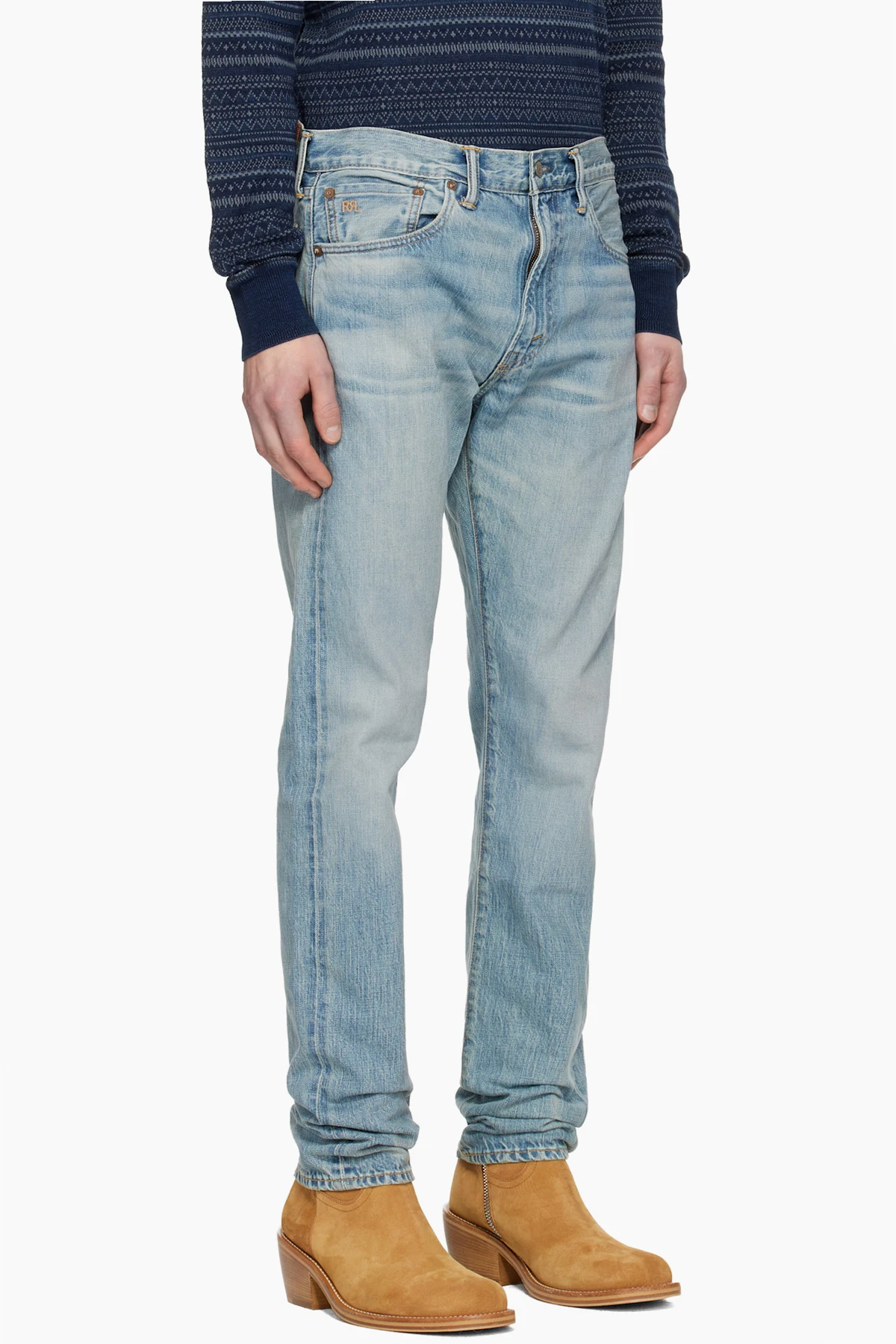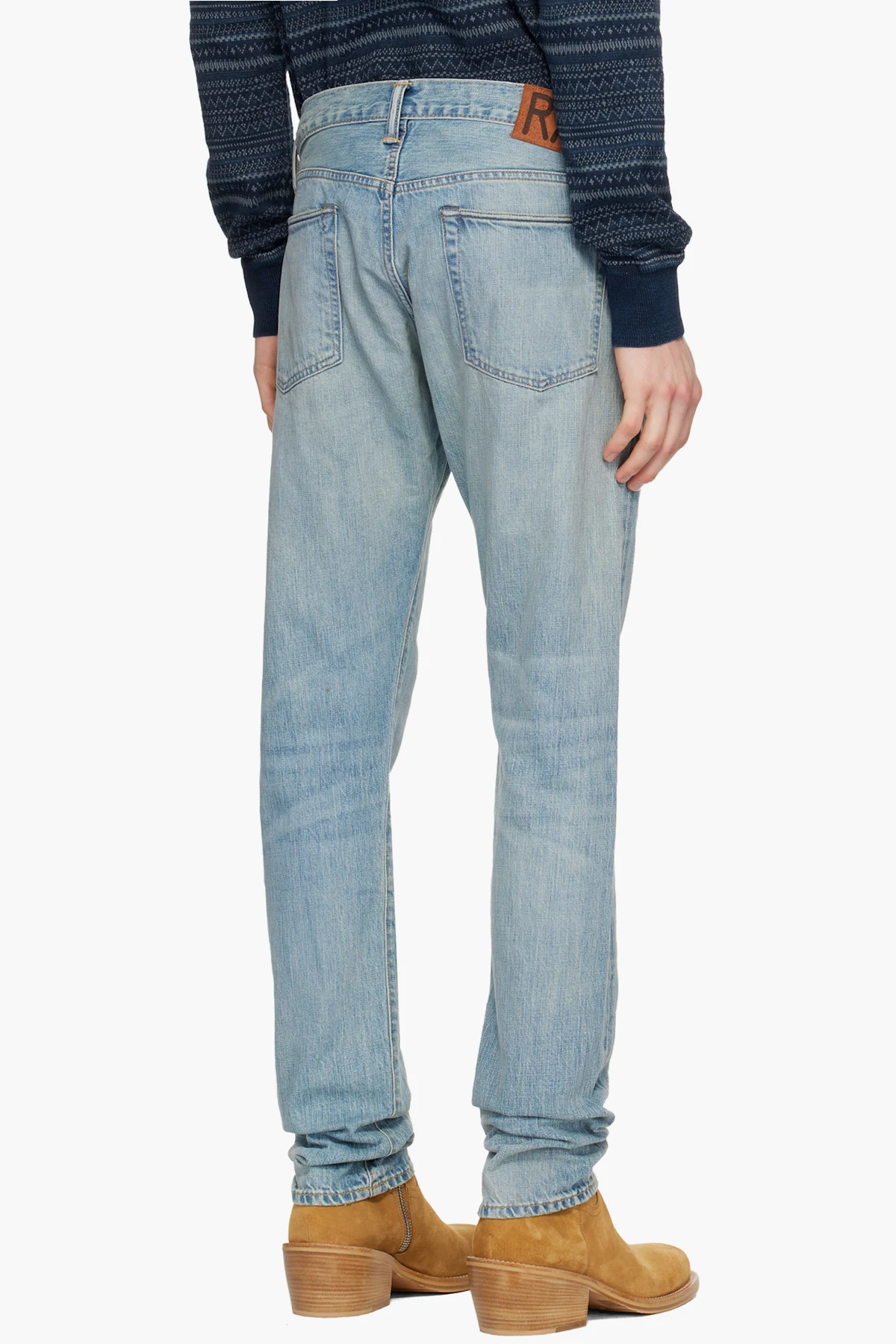 Indigo-dyed non-stretch denim jeans.