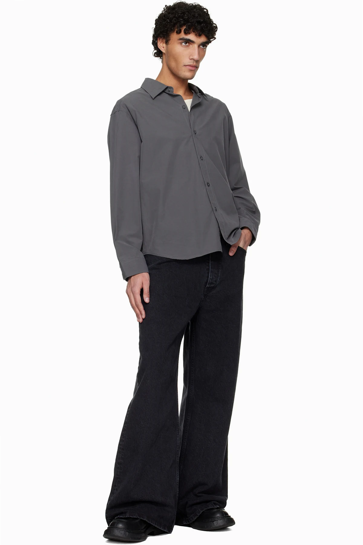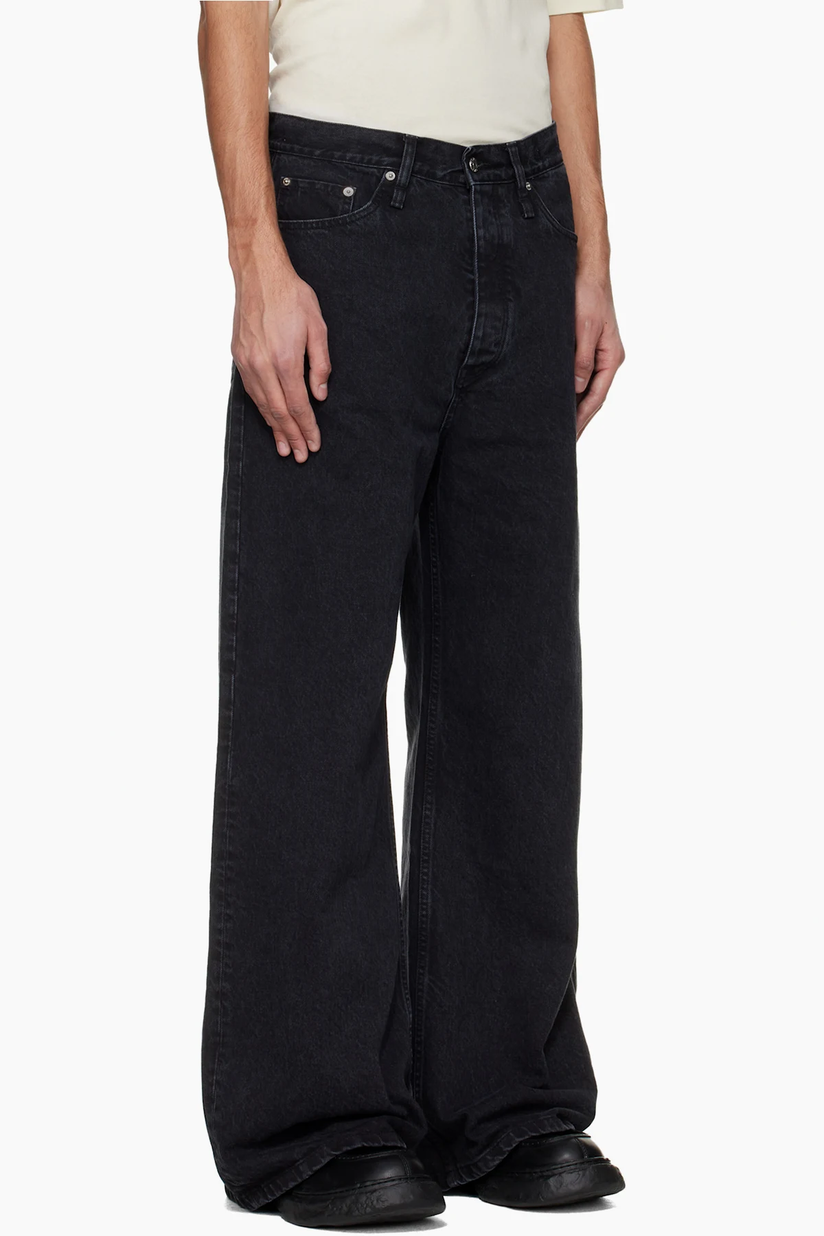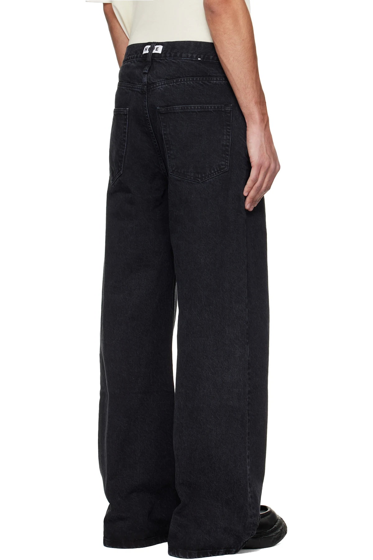 Non-stretch regenerative, organic, and recycled cotton-blend denim jeans.
