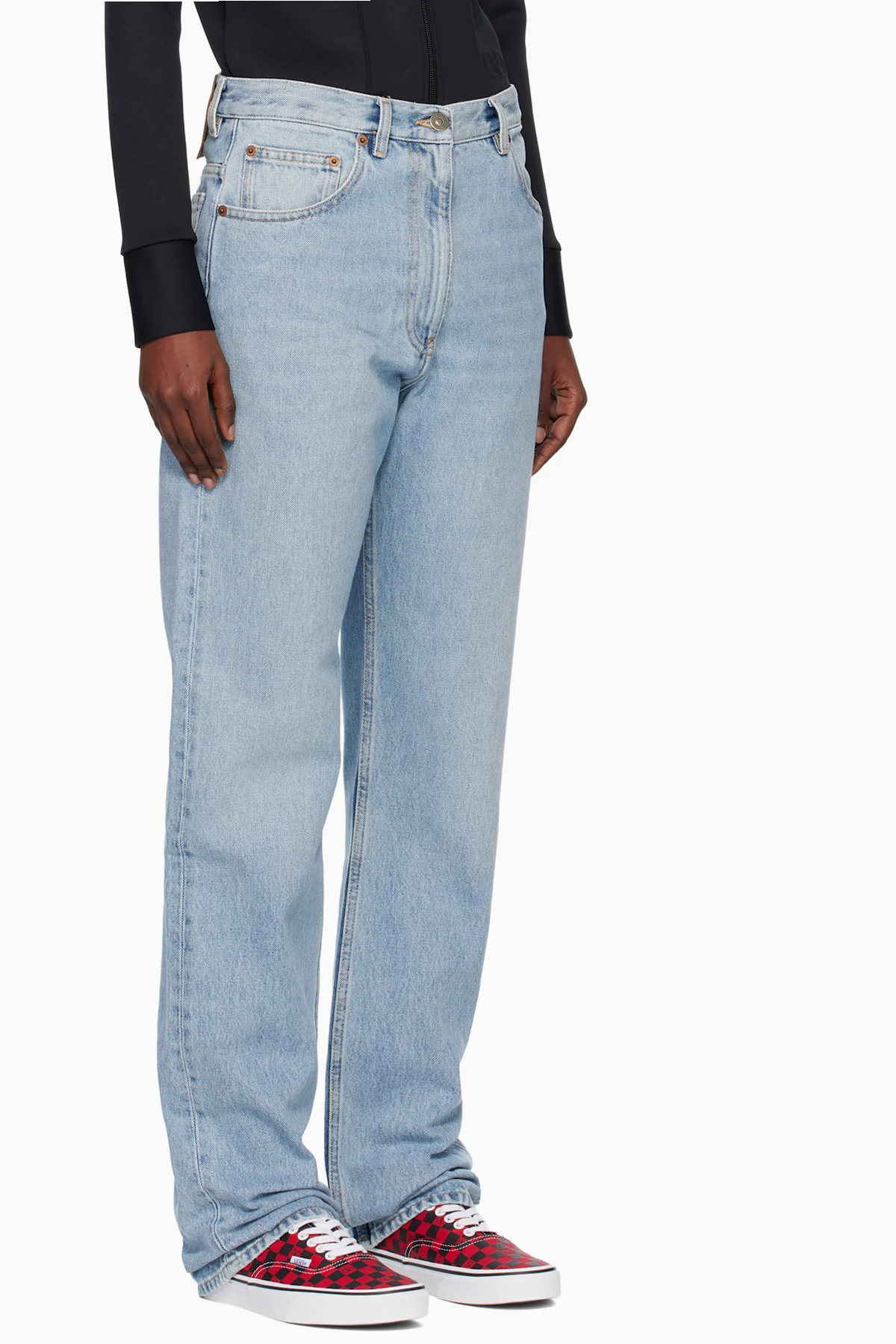 Non-stretch denim jeans.