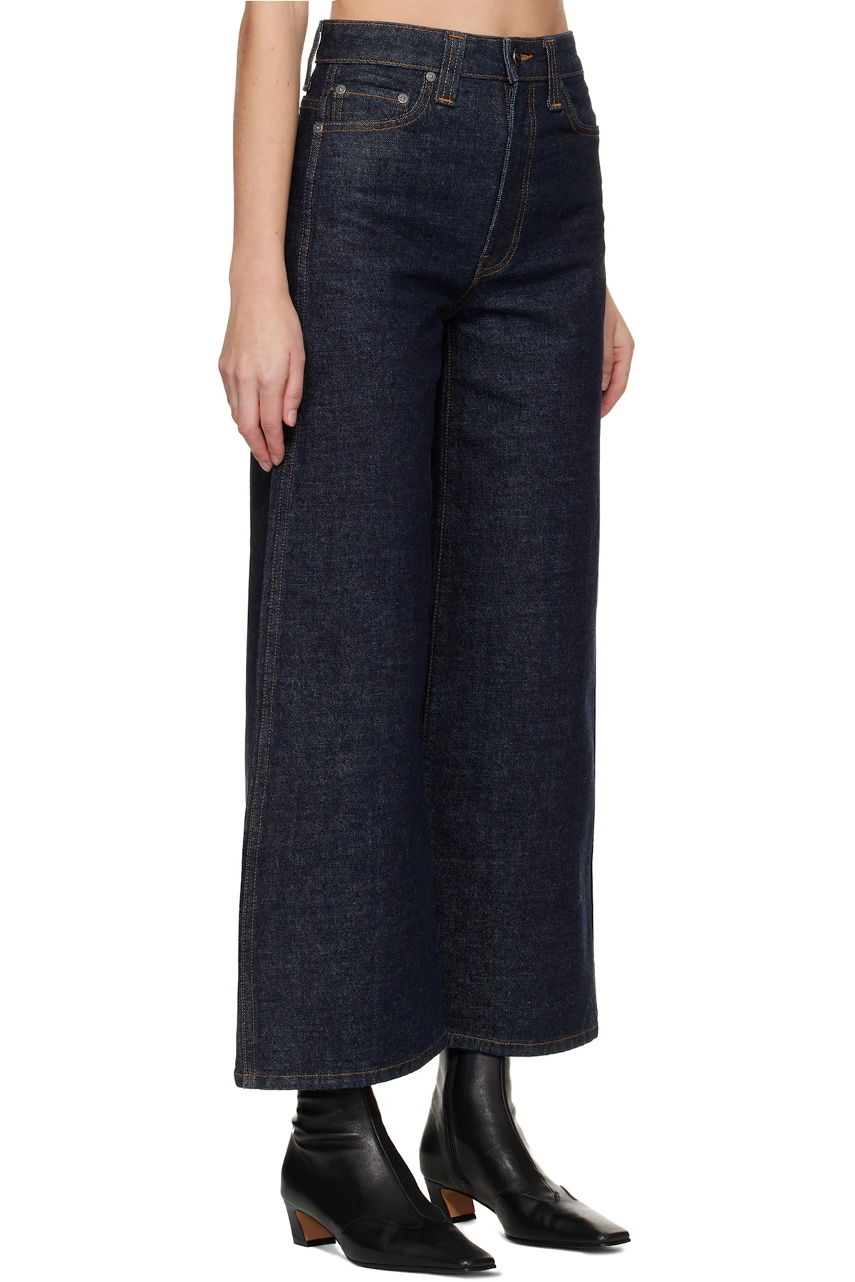 Hand-finished stretch denim jeans.
