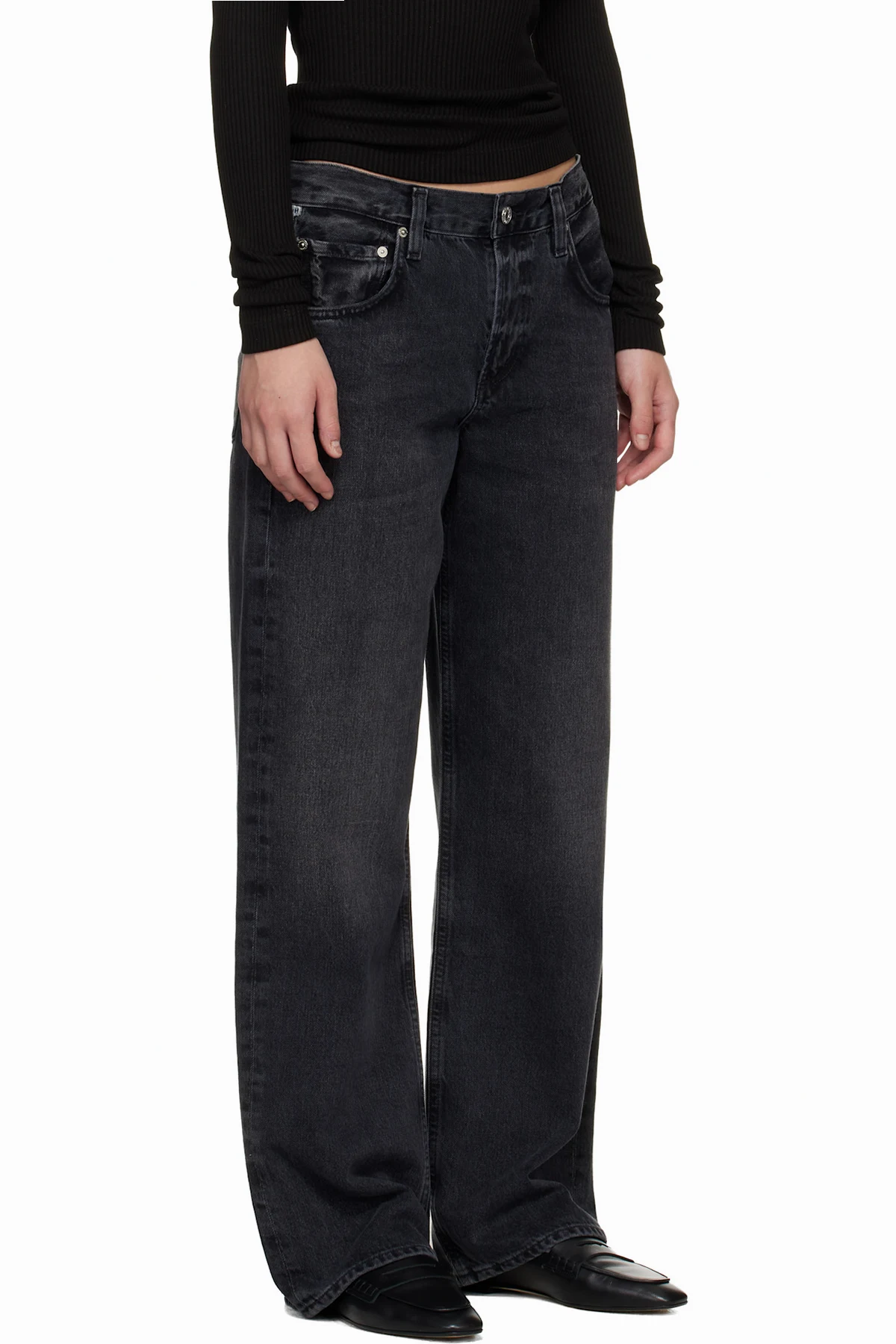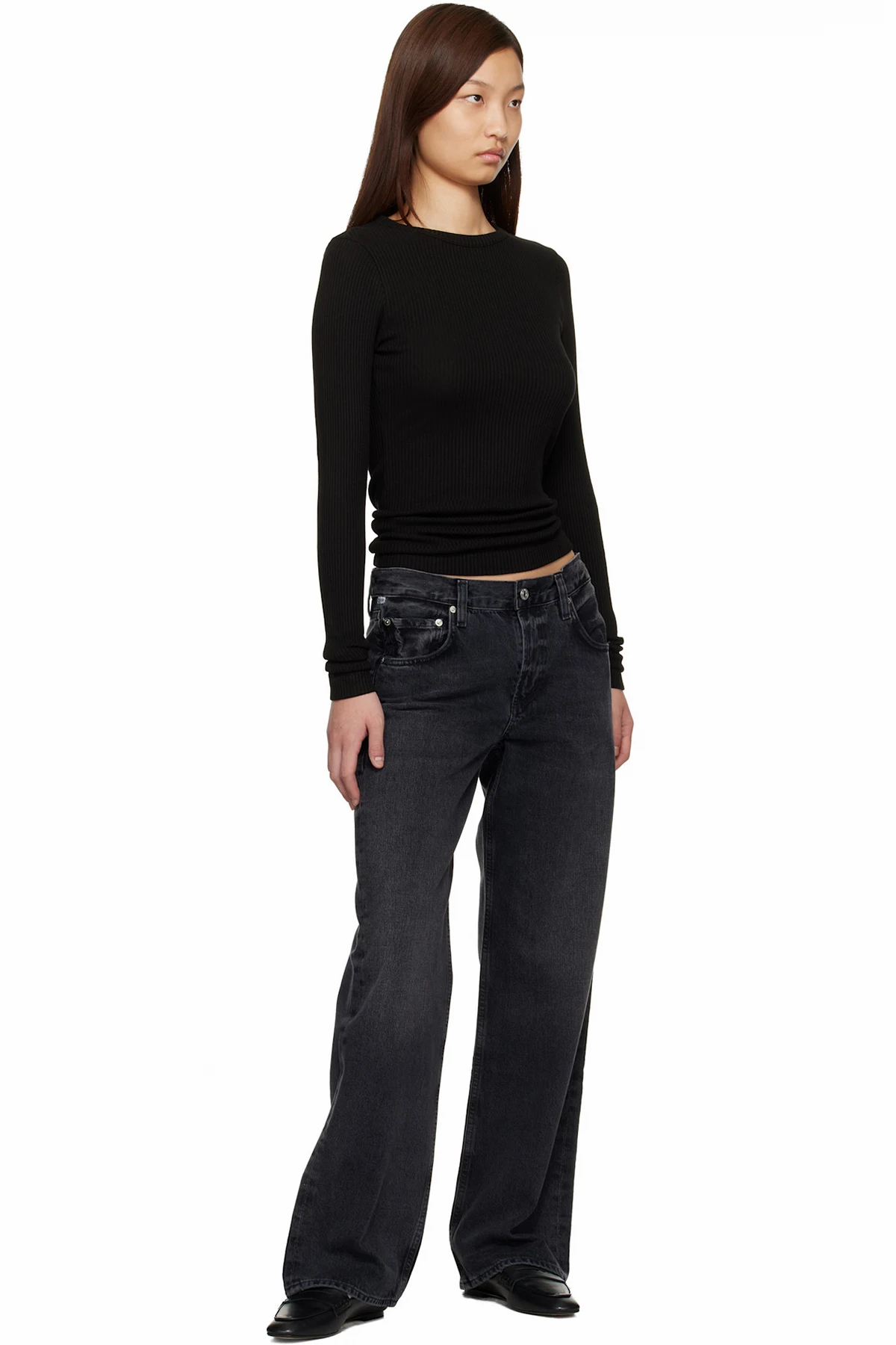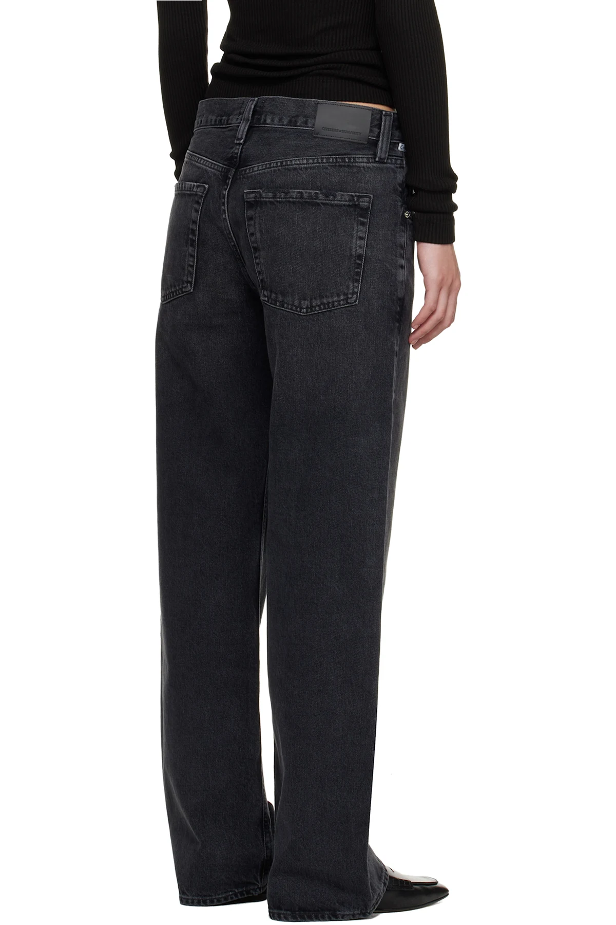 Straight-leg non-stretch regenerative cotton denim jeans.