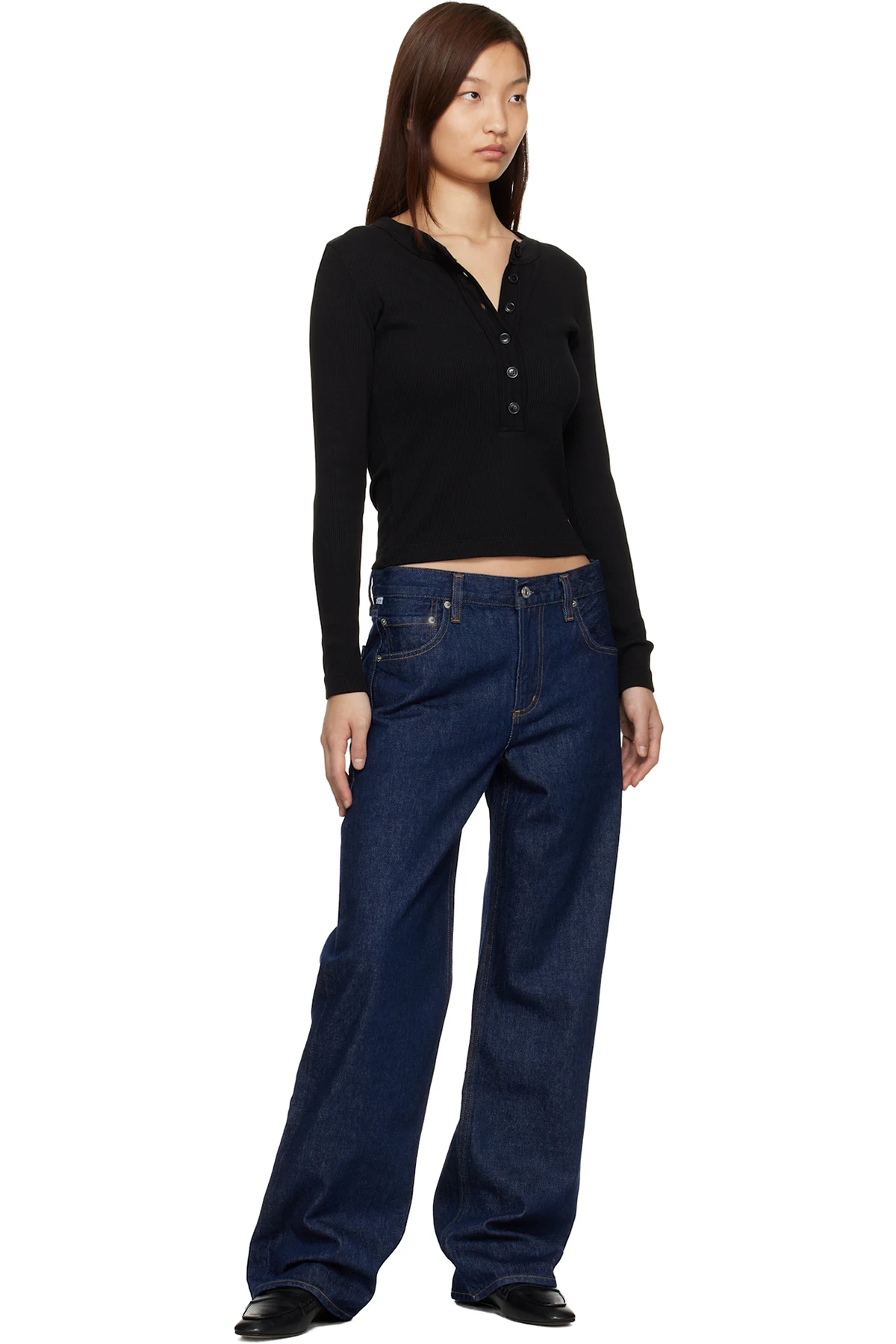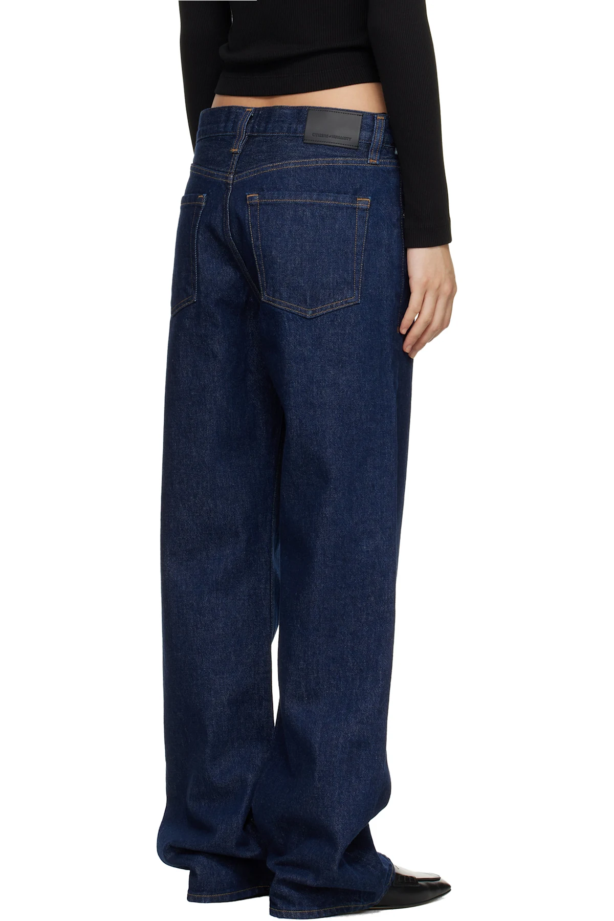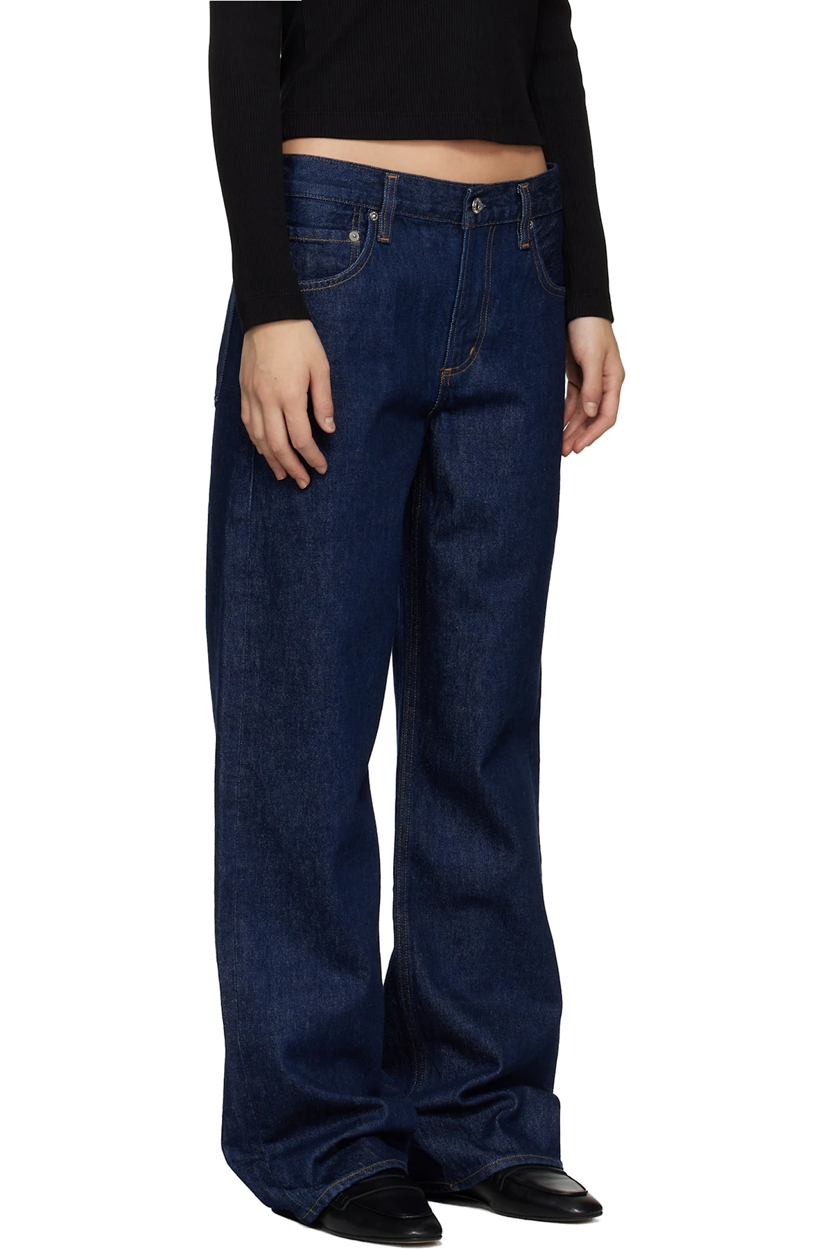 Straight-leg non-stretch regenerative cotton denim jeans.