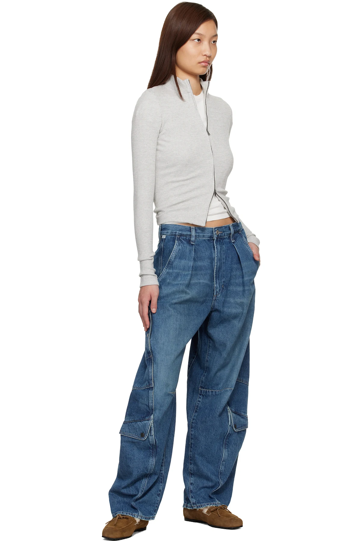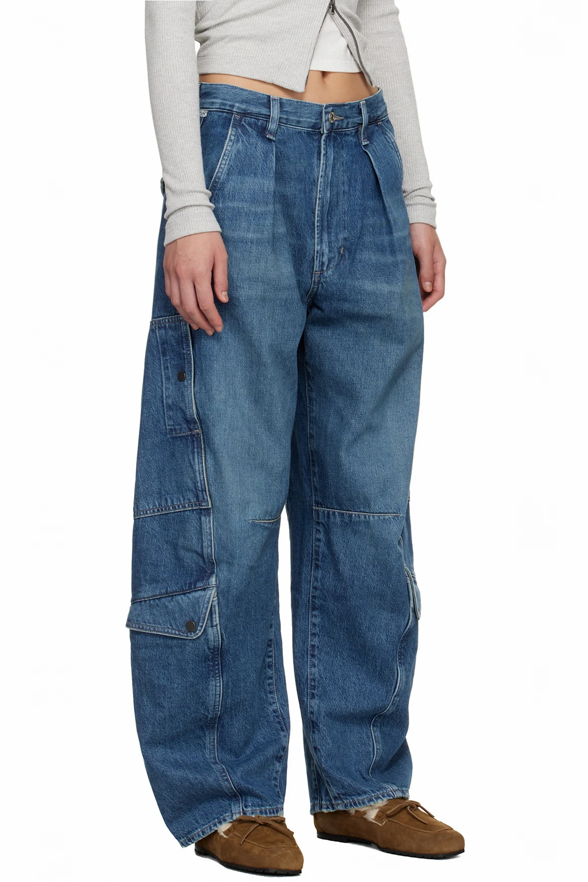 Loose-fit and wide-leg non-stretch regenerative cotton denim jeans.