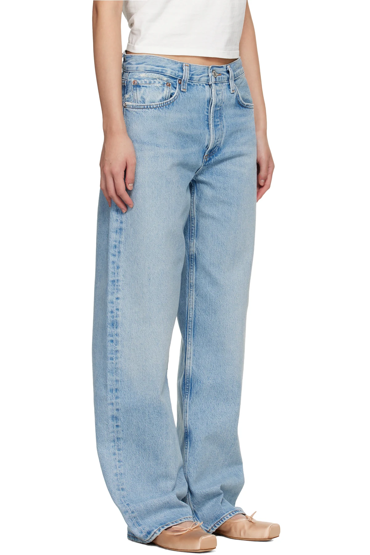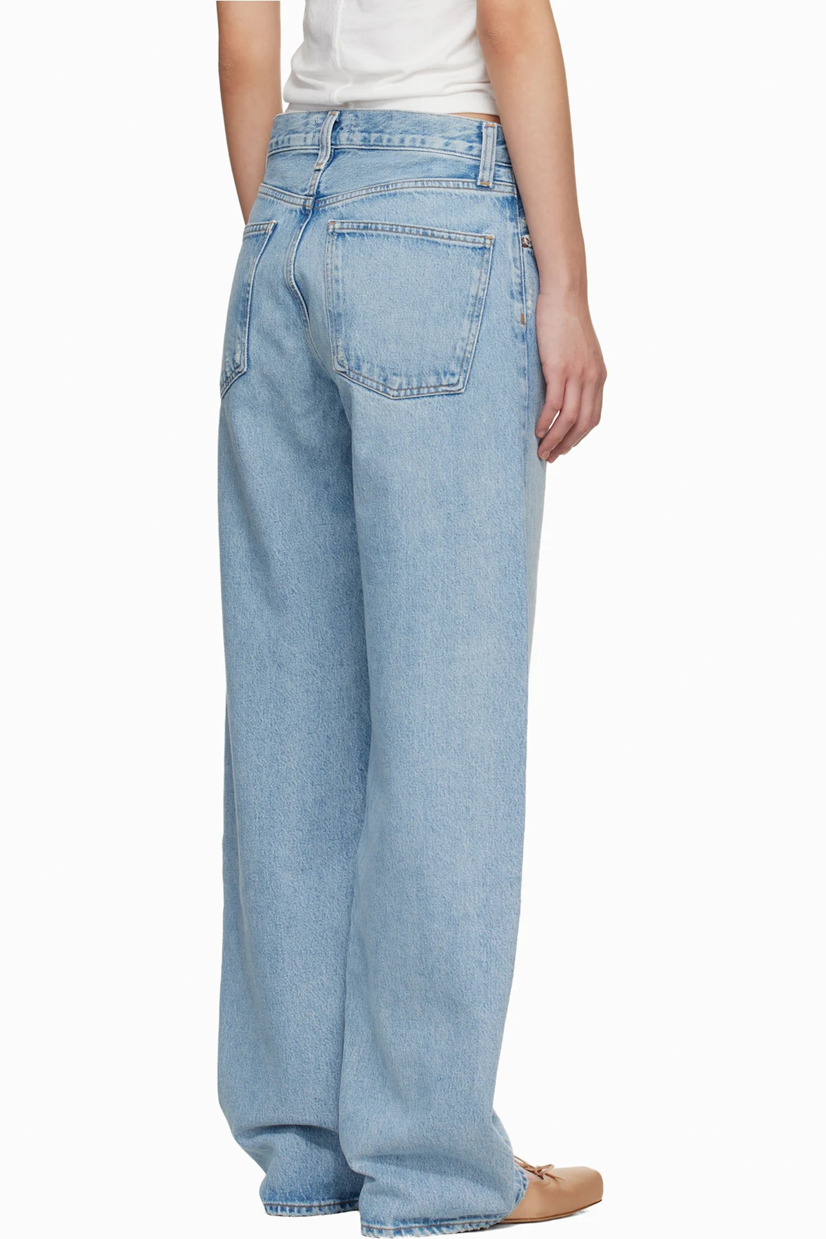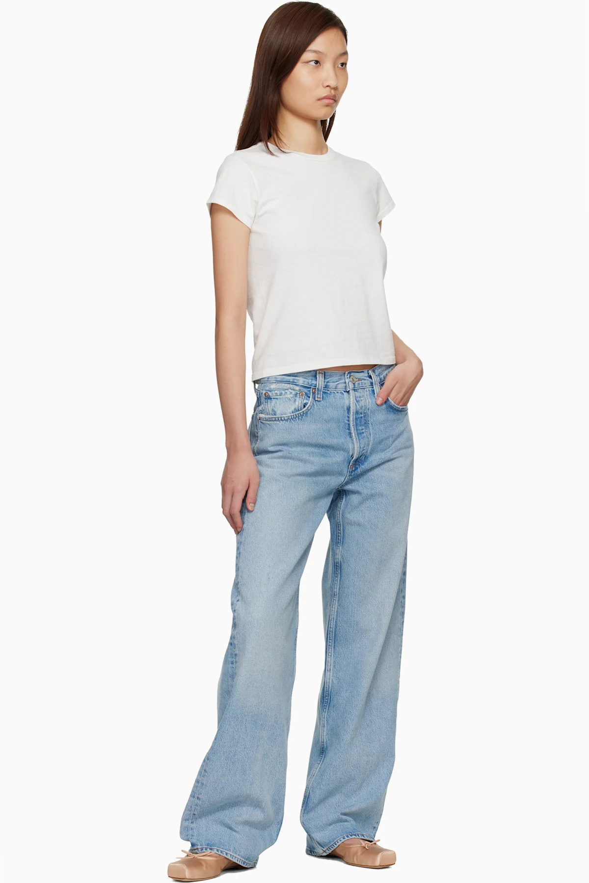 Wide-leg non-stretch regenerative cotton denim jeans.