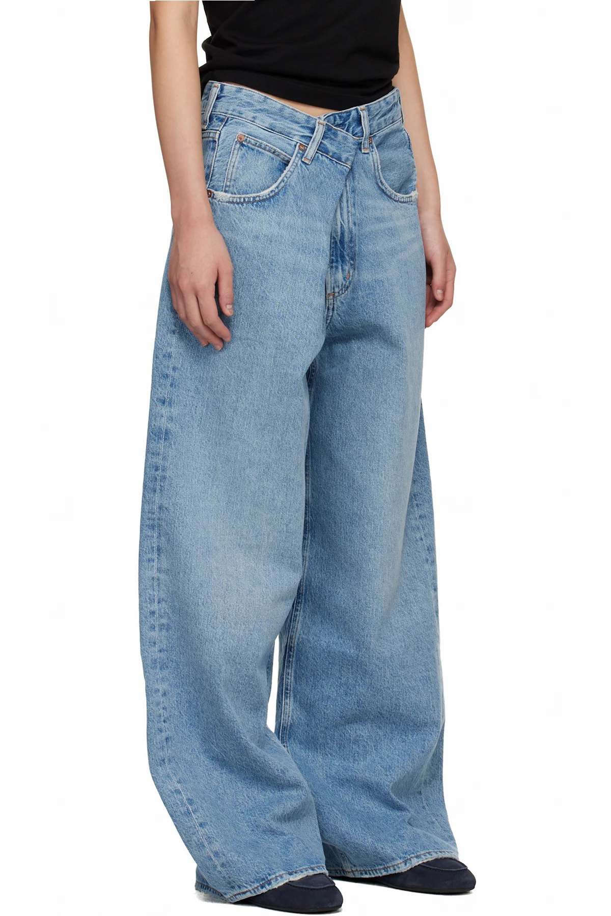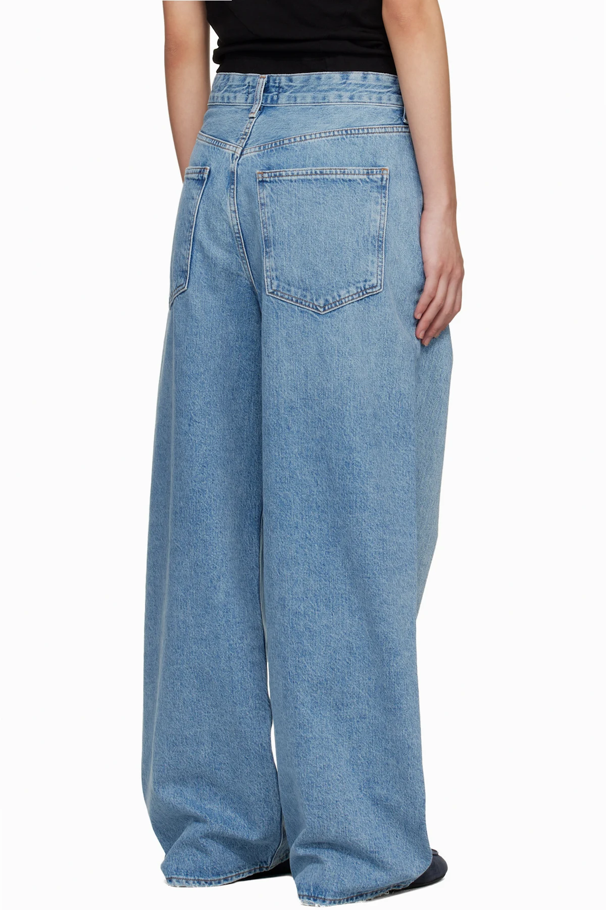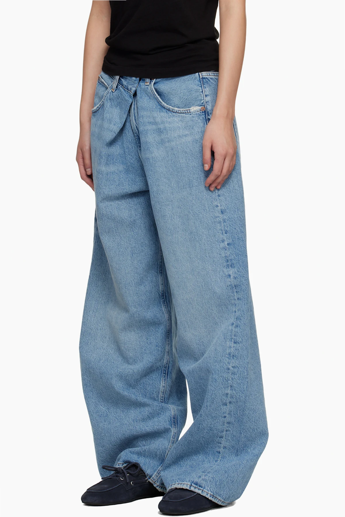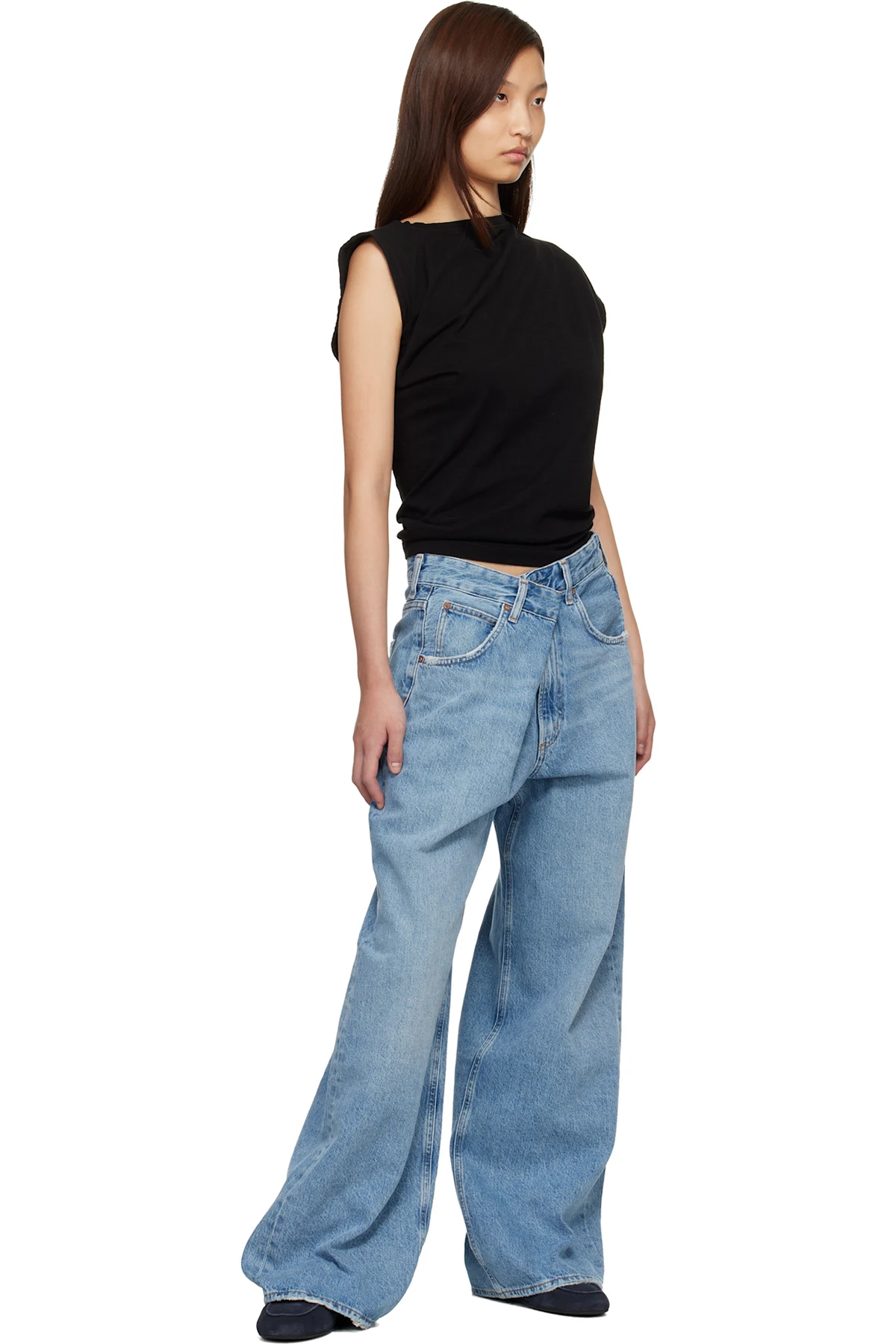 Wide-leg non-stretch regenerative cotton denim jeans.