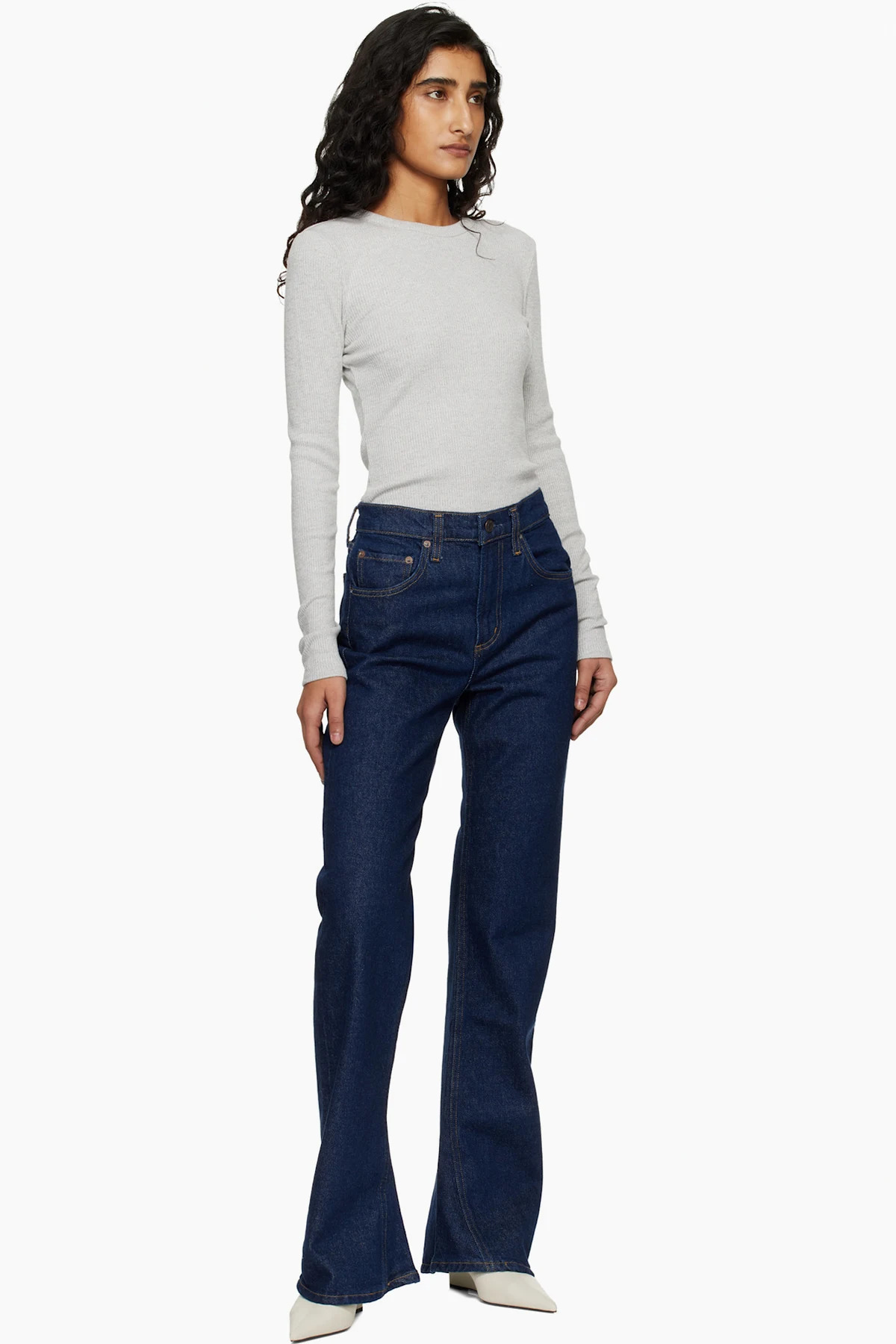 Blue Mid Rise Kick Boot Comfort Stretch Jeans