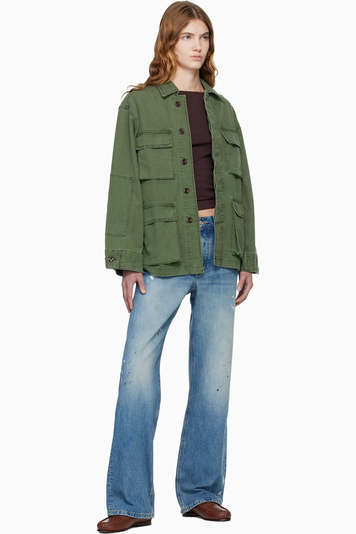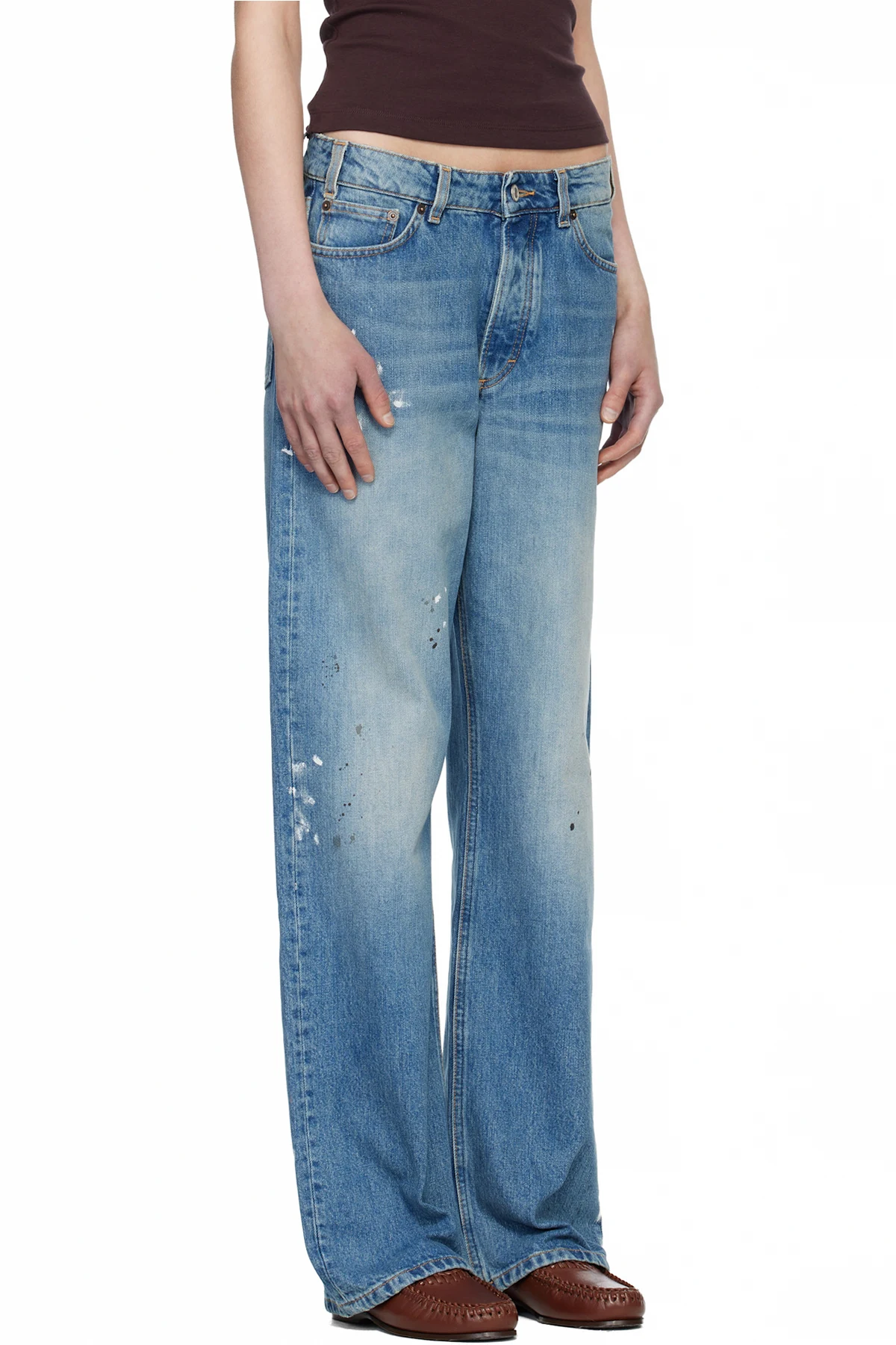 · Fading, whiskering, and paint splatter throughout