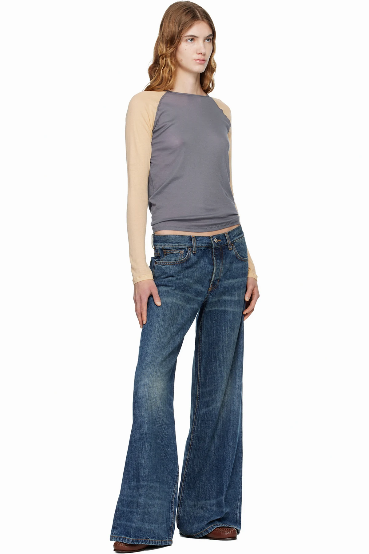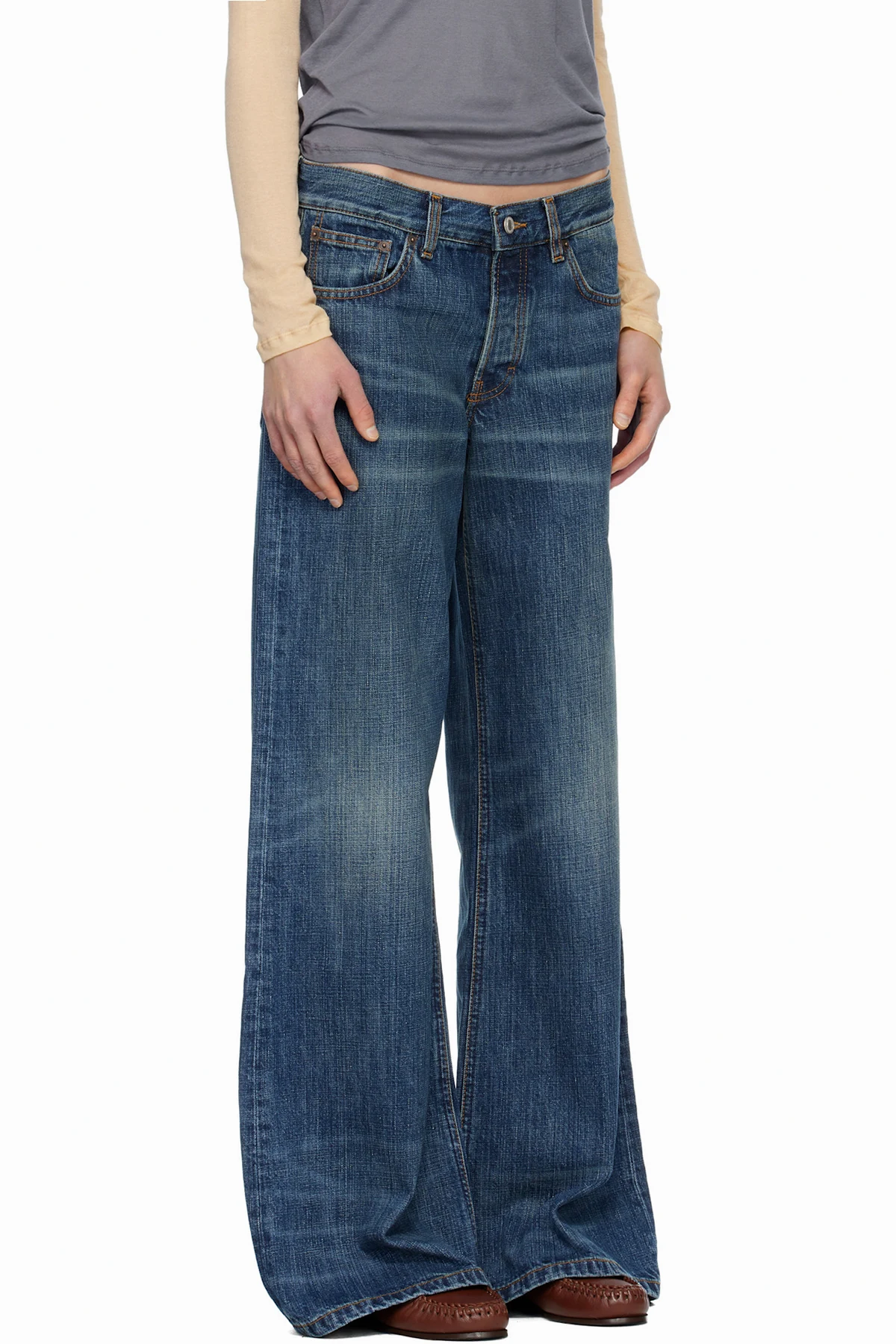 · Flared, loose-fit