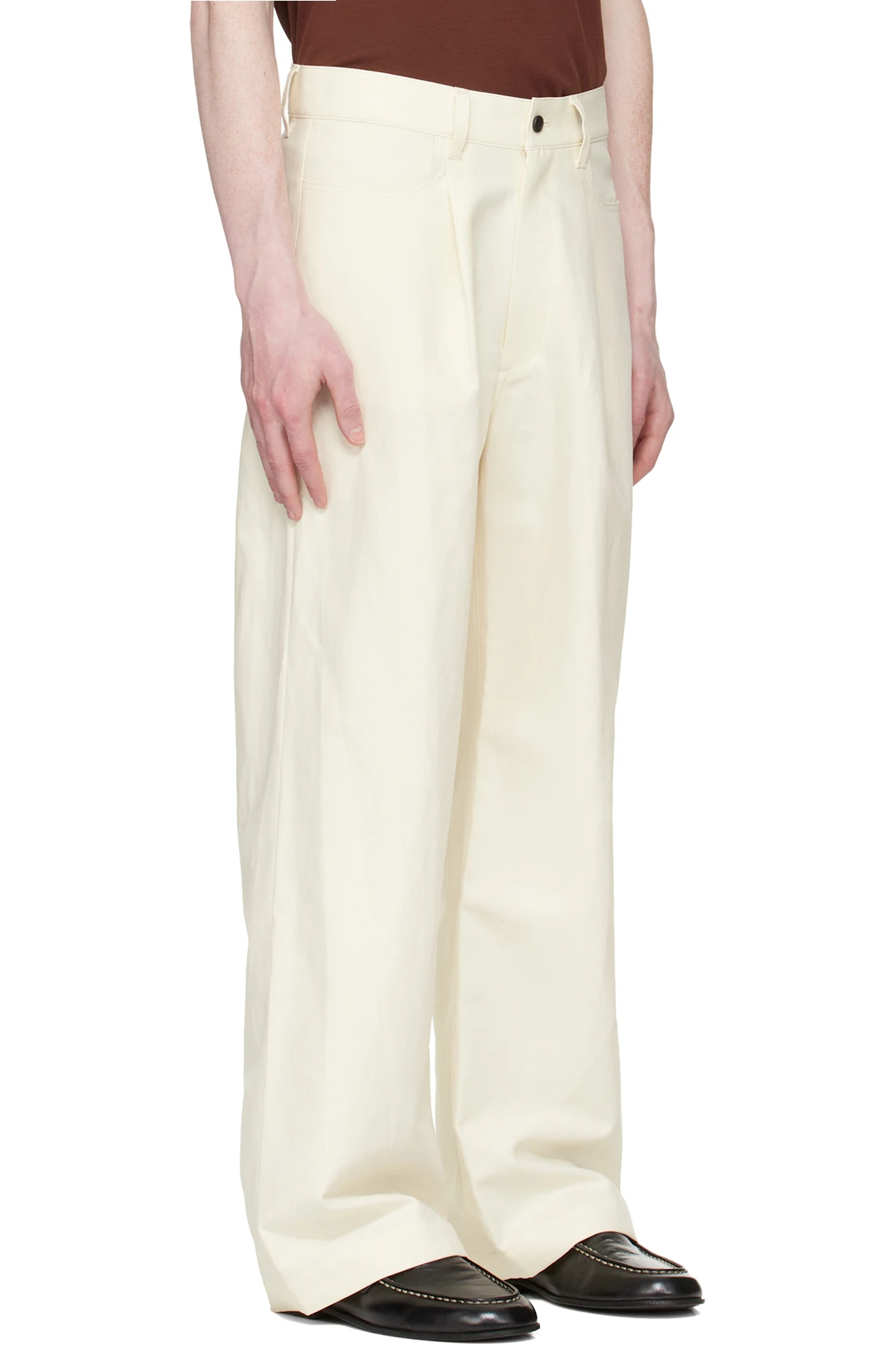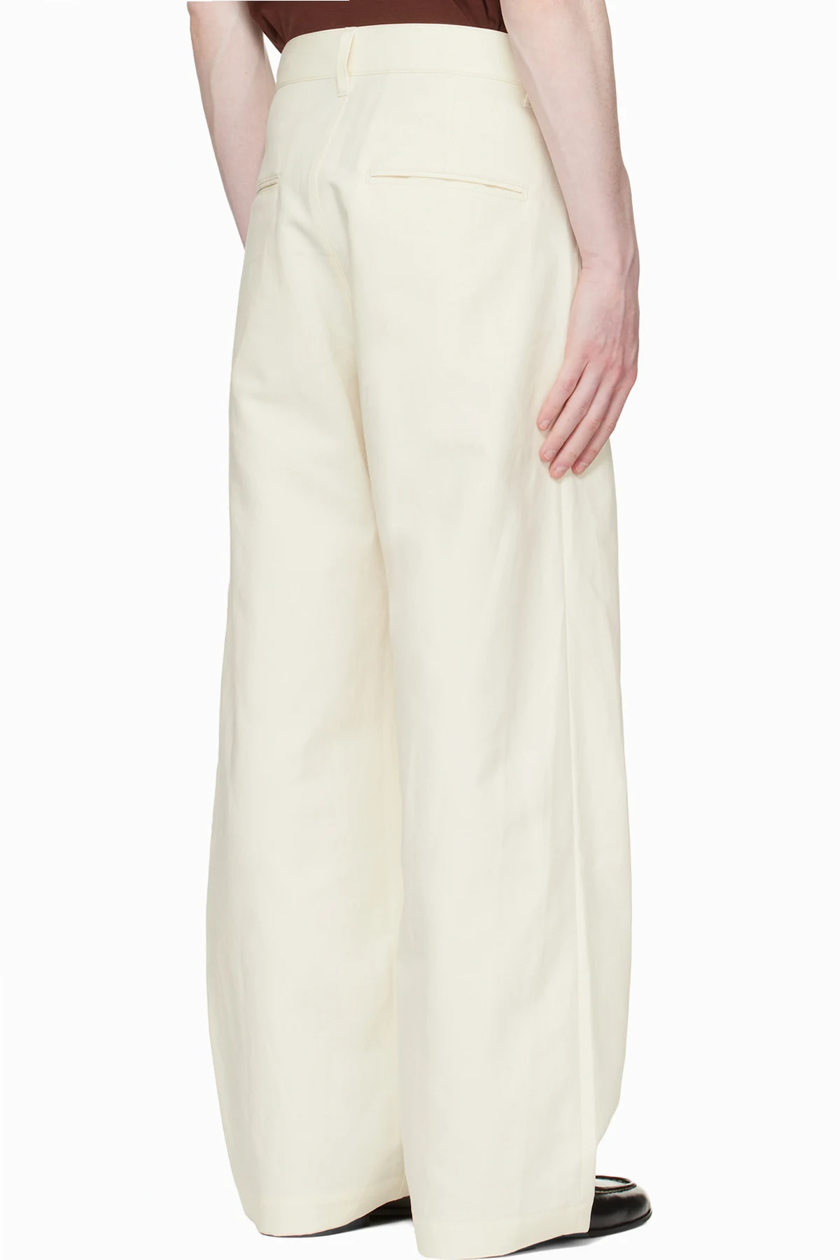 Off-White Double Weave Cotton One Tuck Wide Trousers