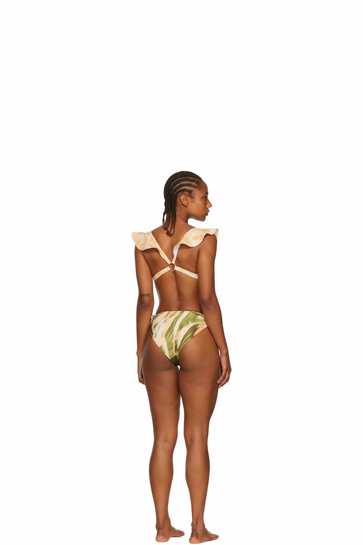 Stretch Mipan Regen® recycled nylon jersey bikini top. Graphic pattern printed throughout.