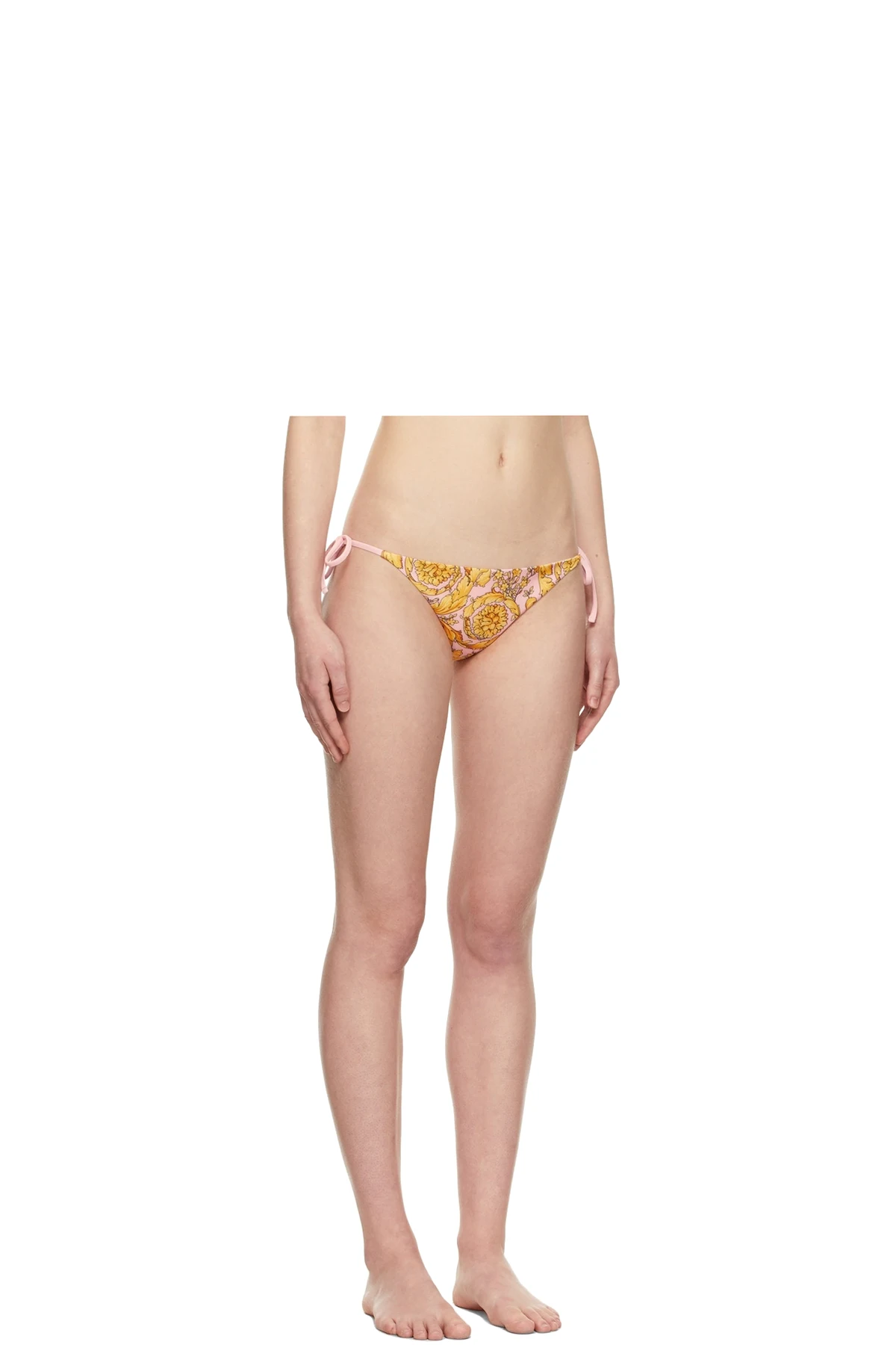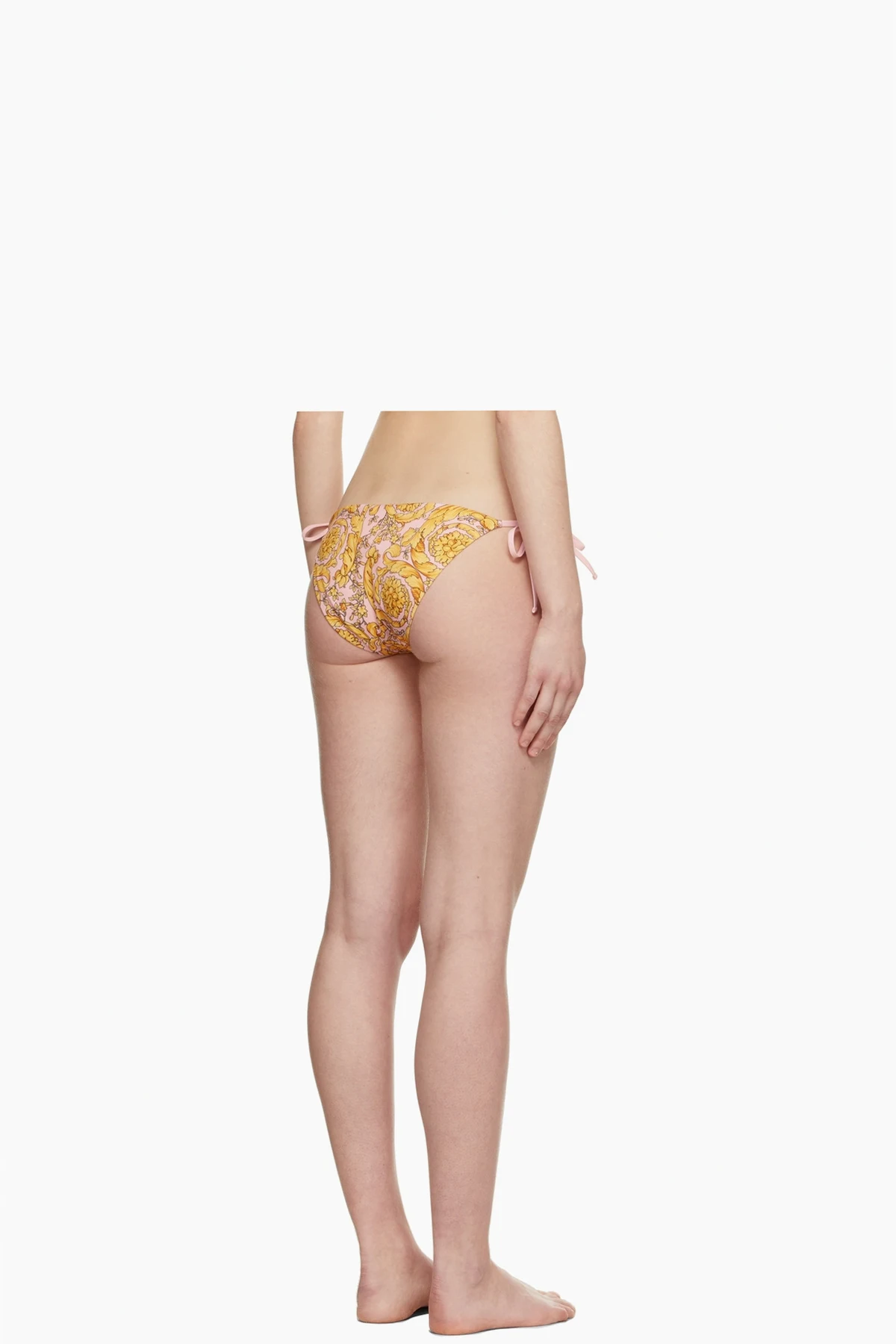 Stretch jersey bikini bottoms in pink featuring signature graphic print in tones of yellow.