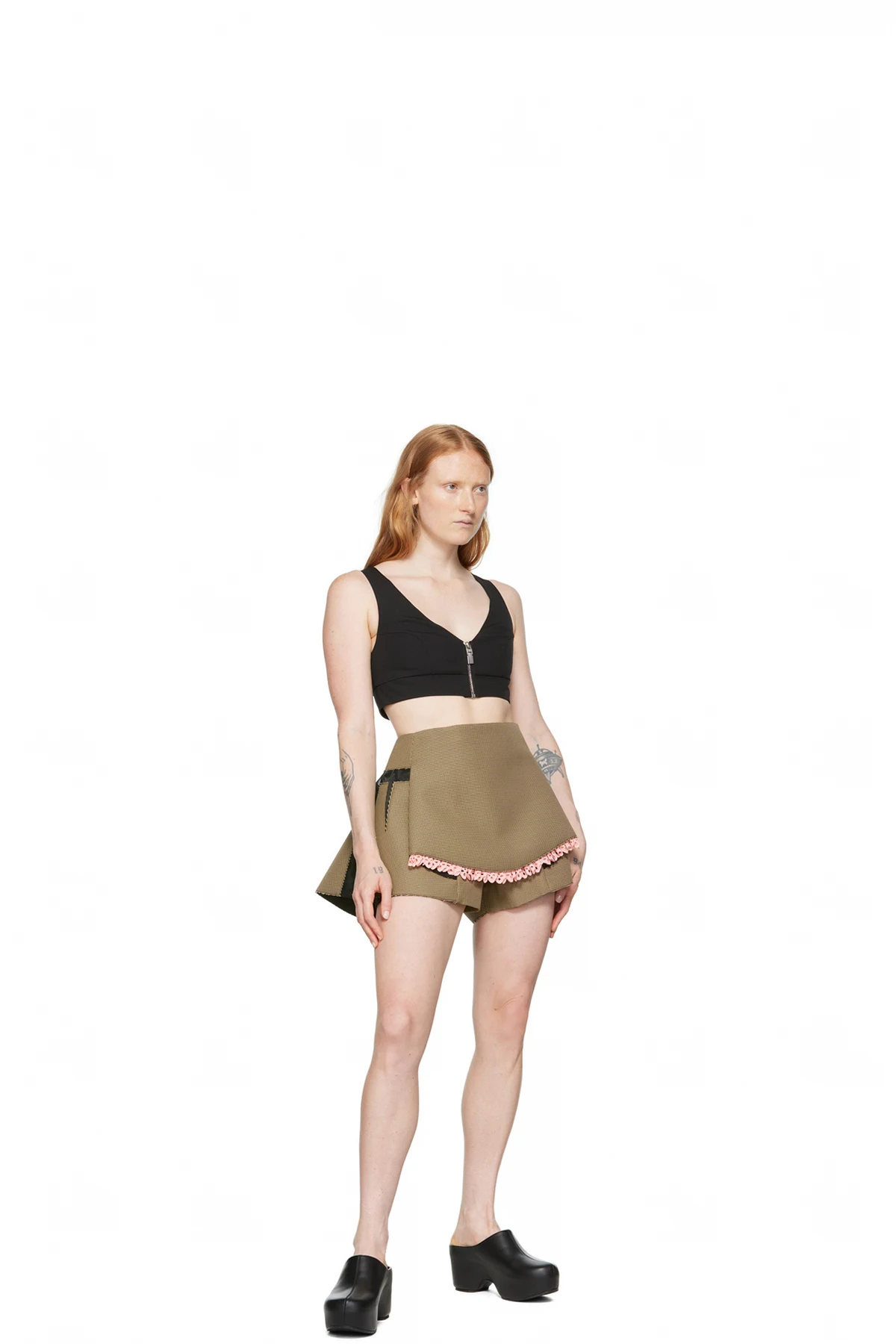Body: 63% polyester, 37% cotton. Trim 1: 83% polyamide, 17% elastane. Trim 2: 100% polyamide. Trim 3: 100% cotton. Lining: 100% silk.