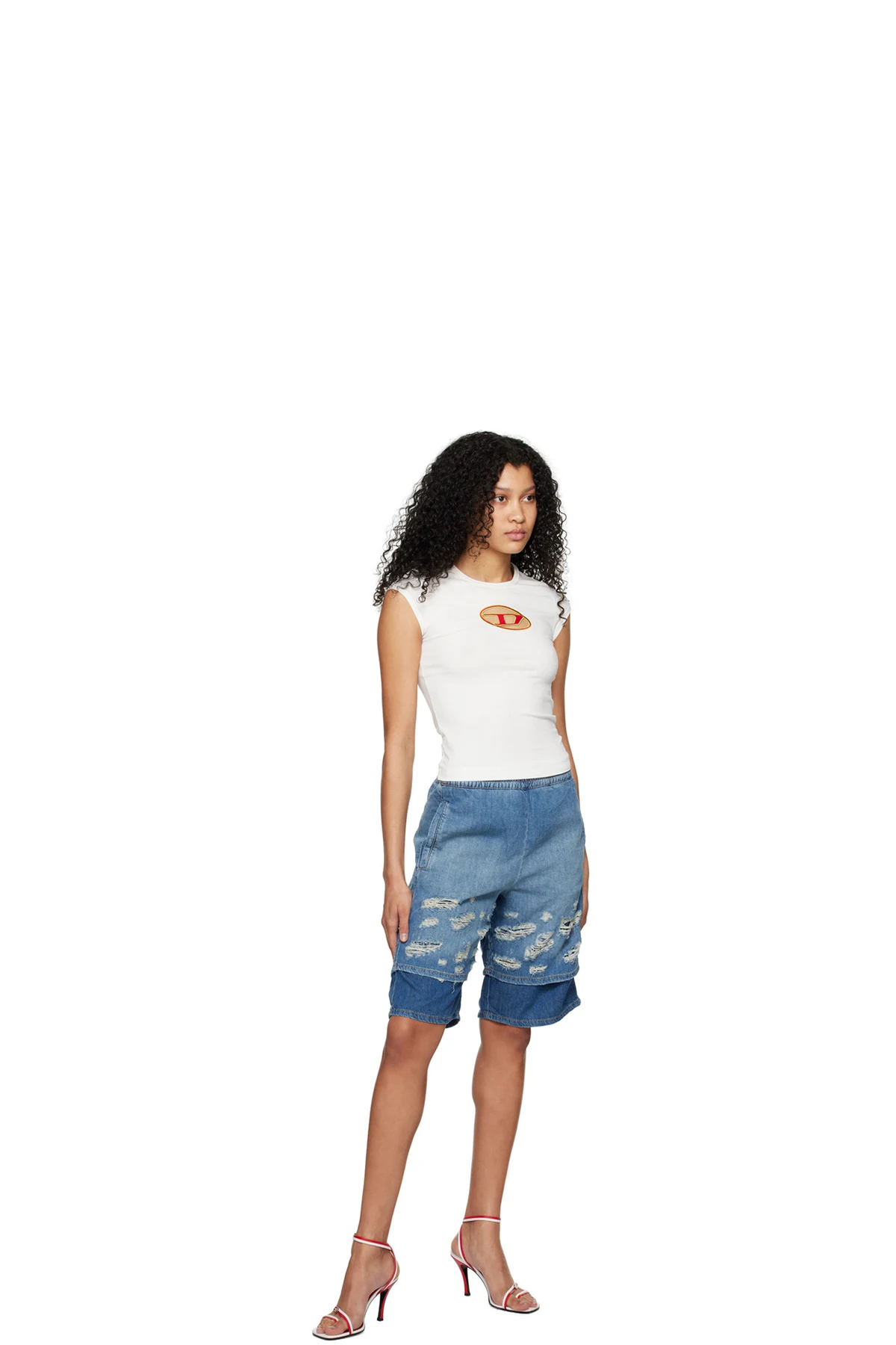 Lightweight stretch denim shorts. Fading and distressing throughout.