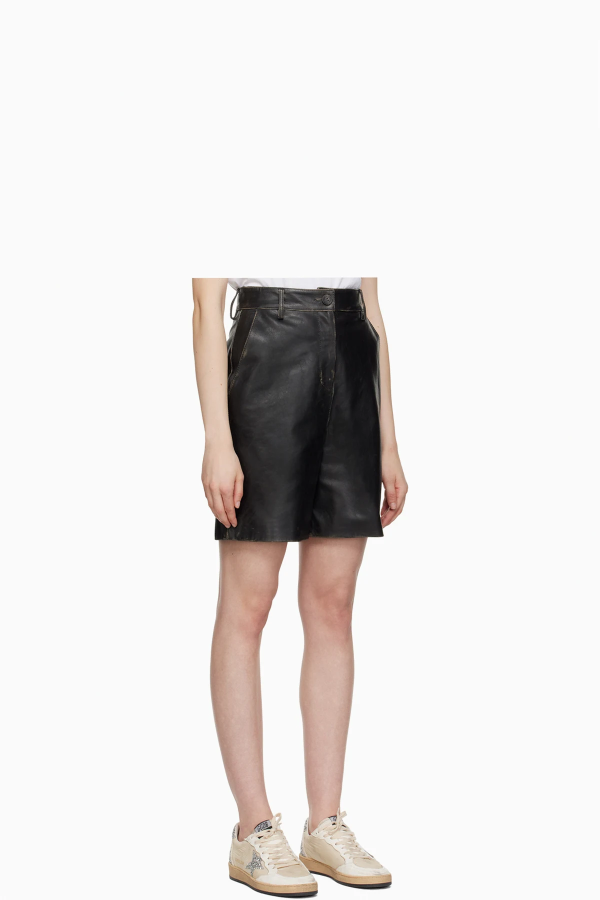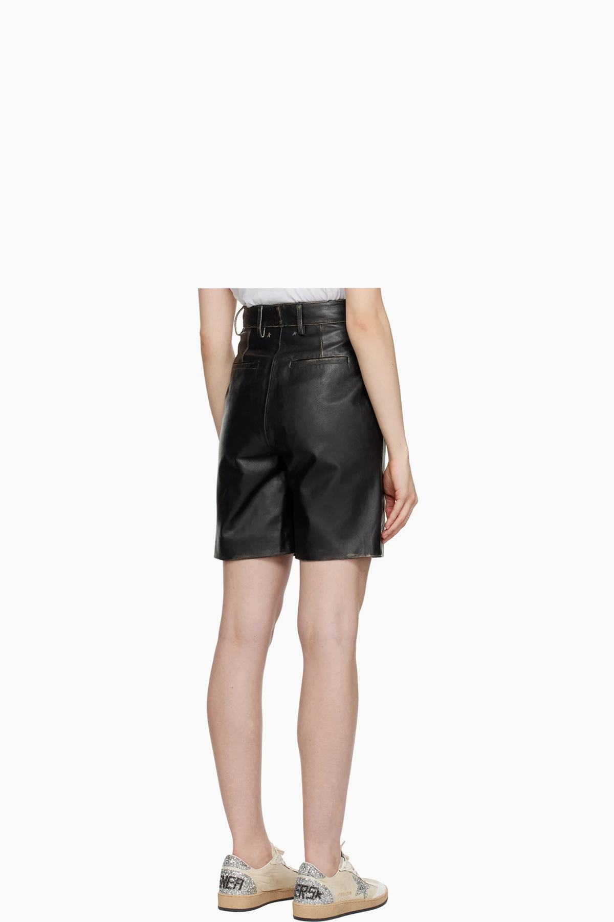 Black Four-Pocket Leather Shorts