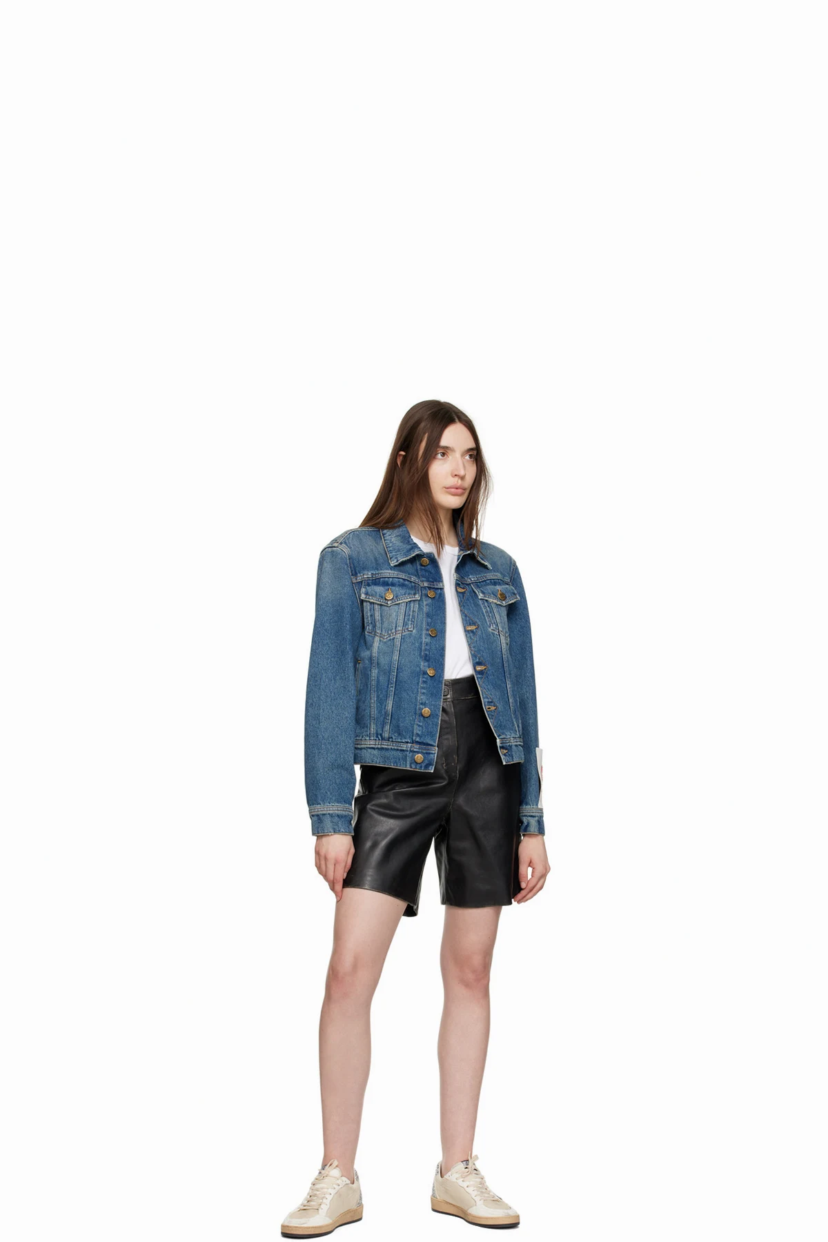 Wide-leg grained leather shorts.