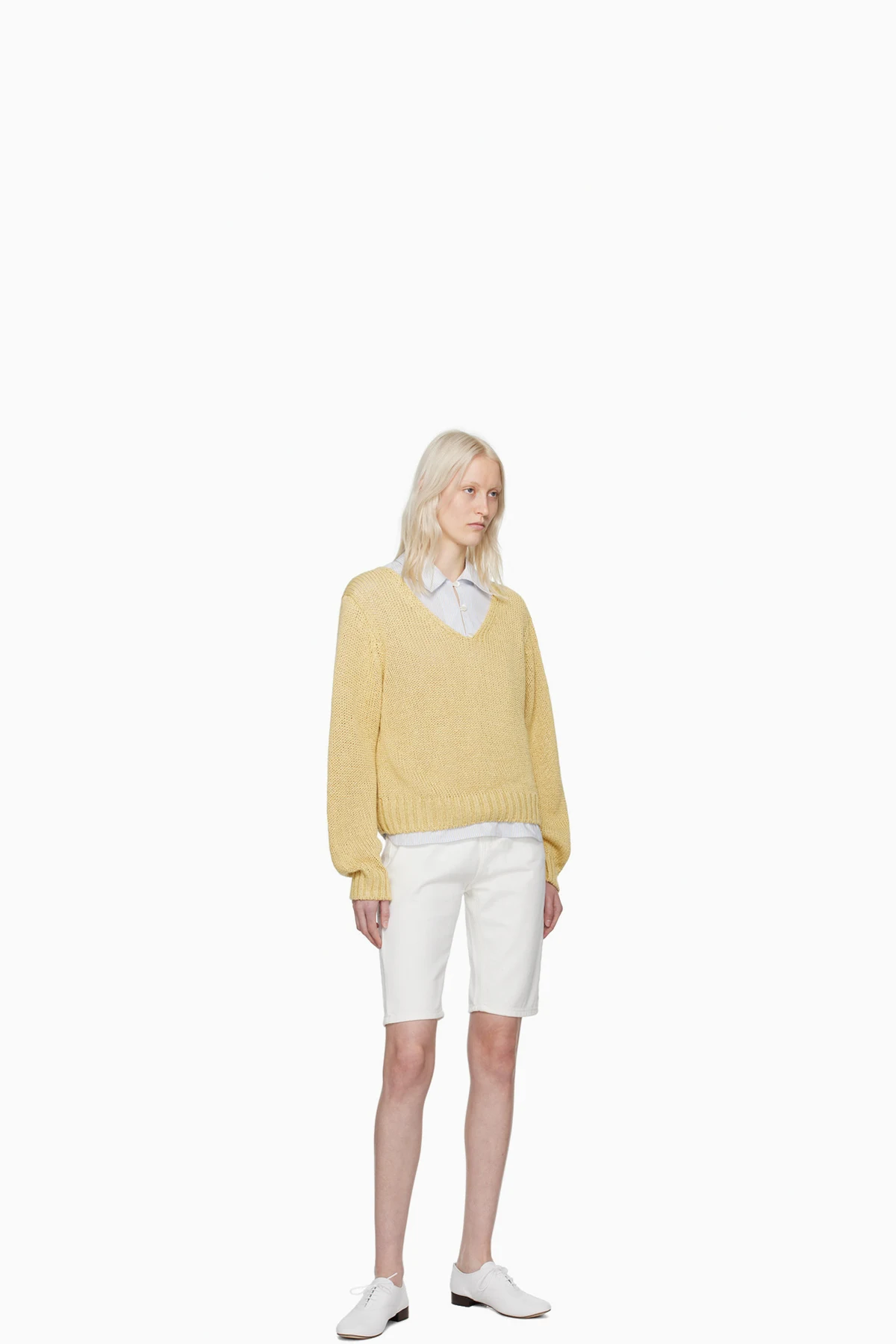 White Half White Denim Shorts