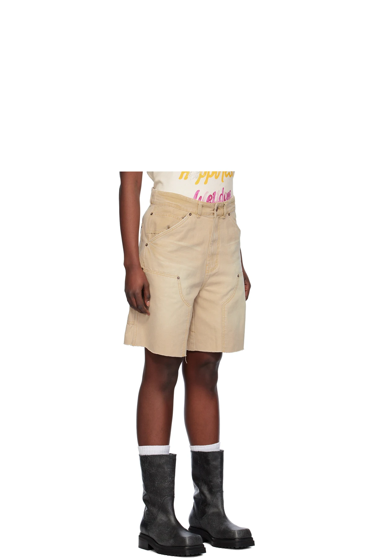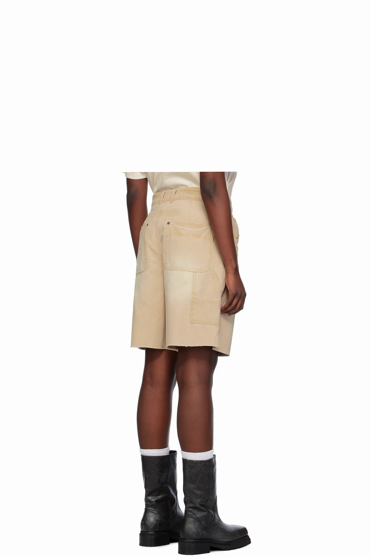 Cotton canvas shorts. Fading and whiskering throughout.