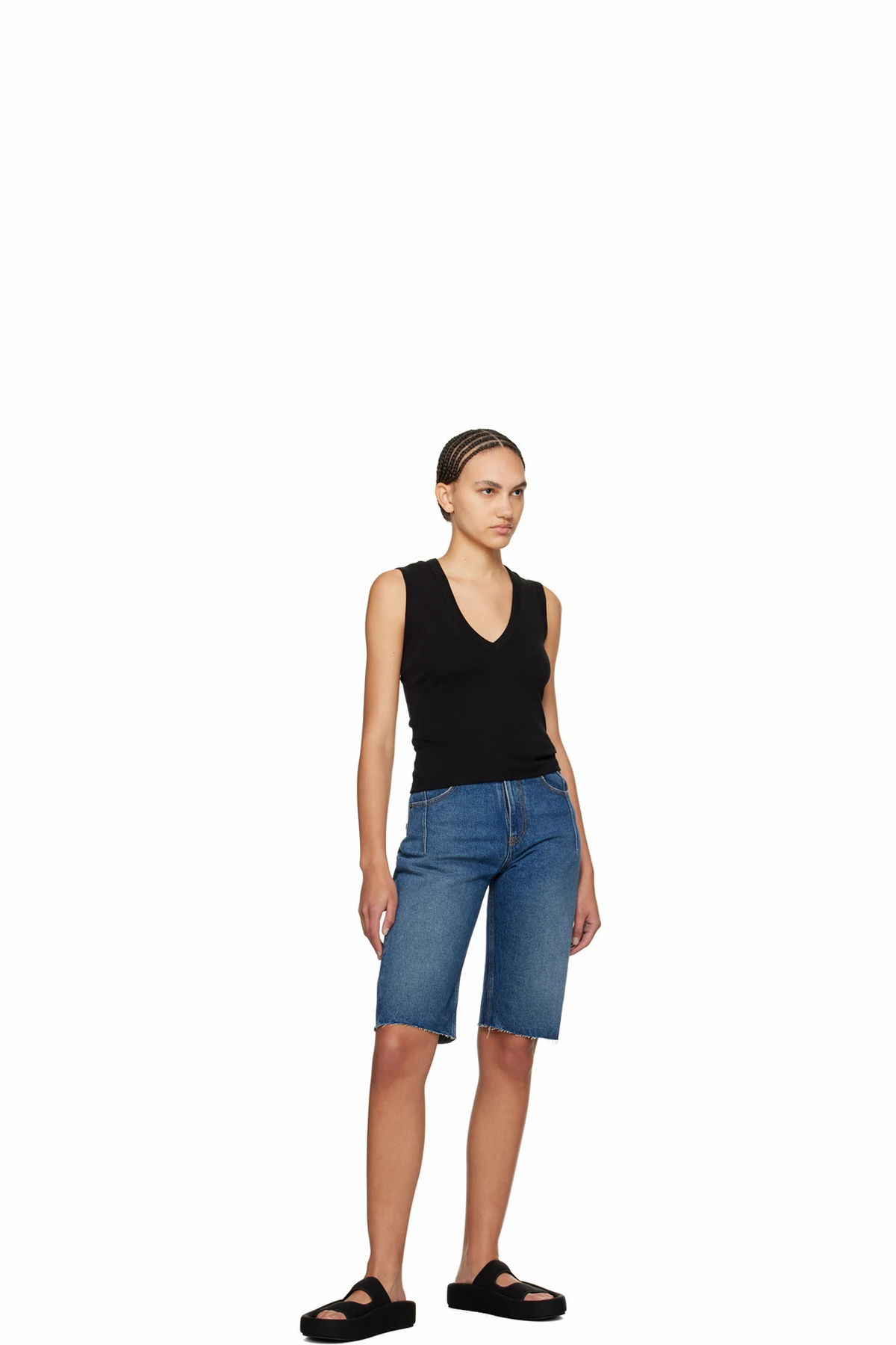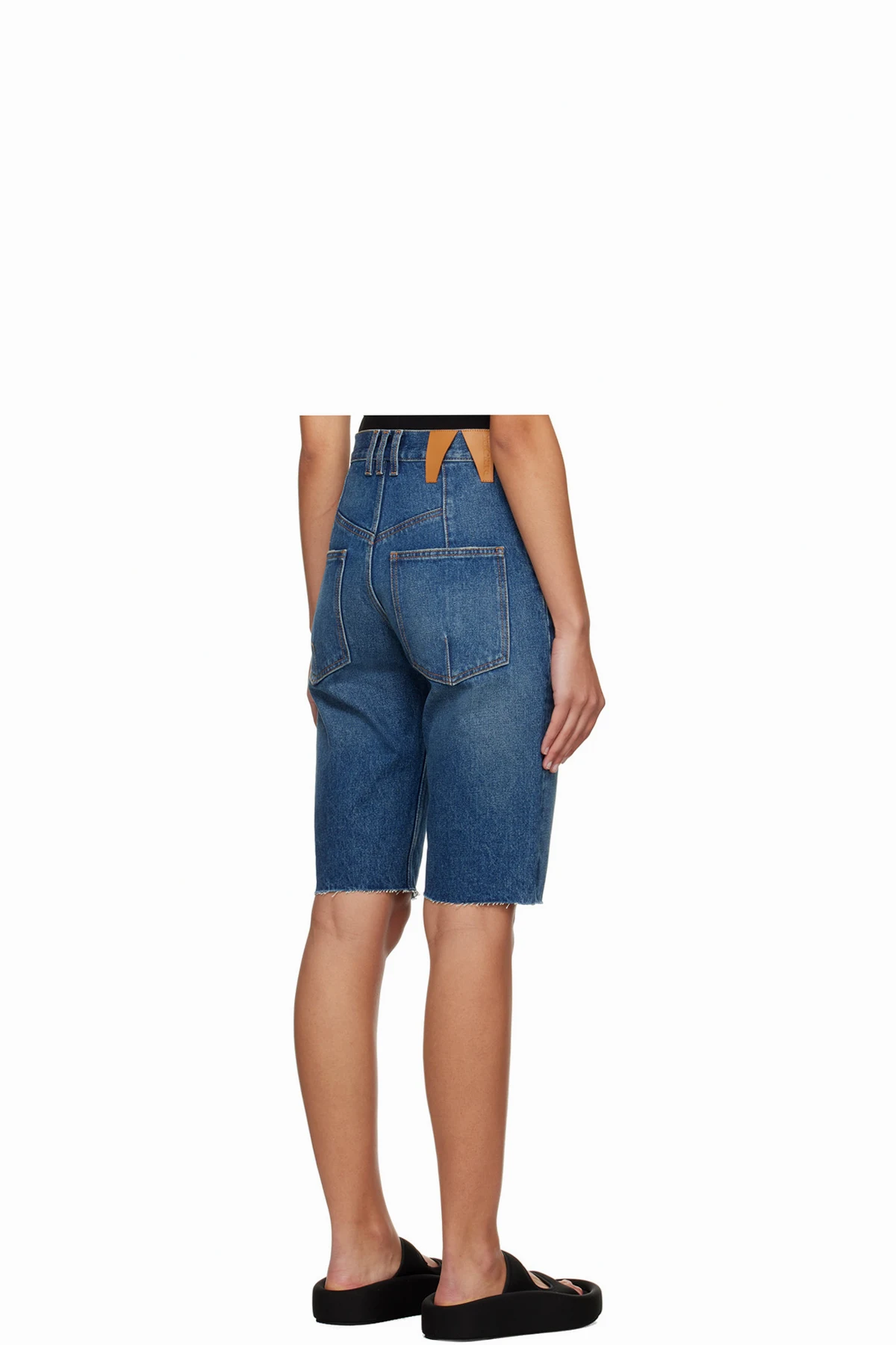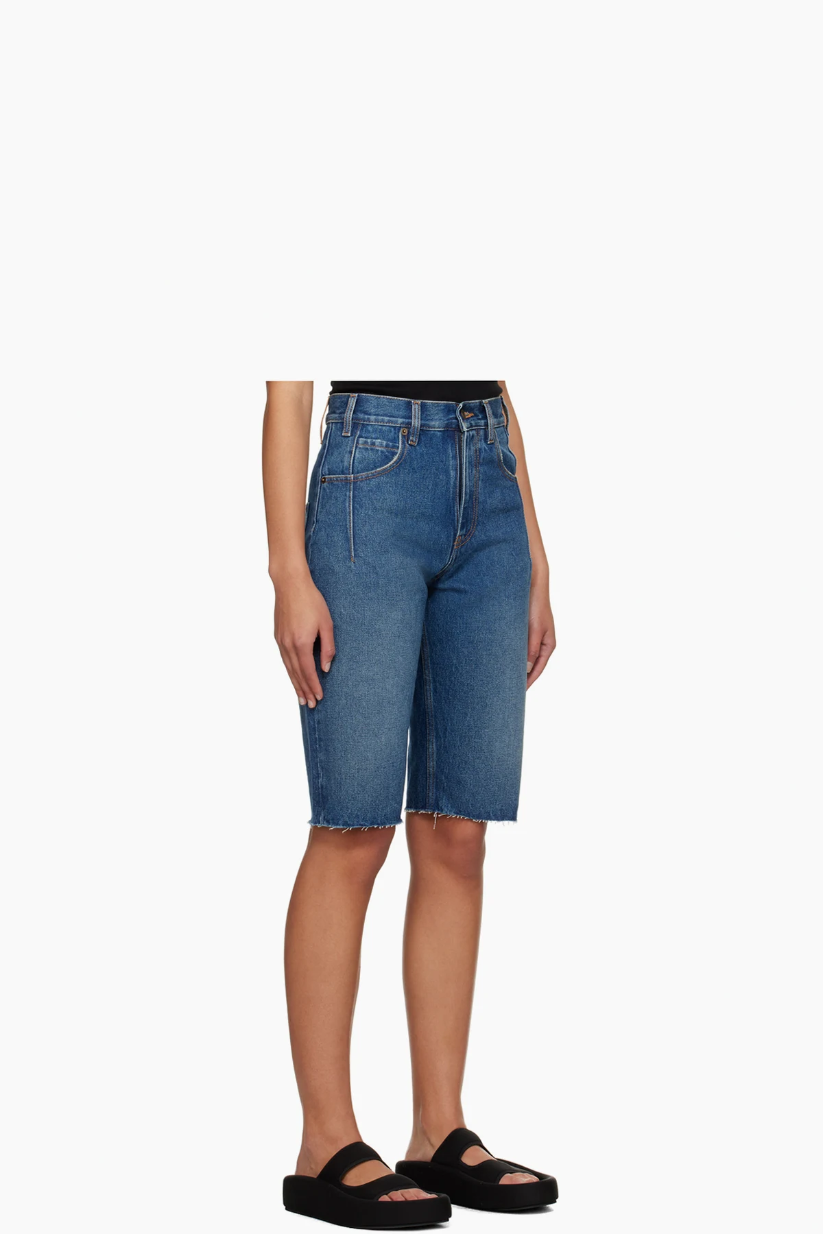 Non-stretch denim shorts. Darts, fading, and subtle distressing throughout.