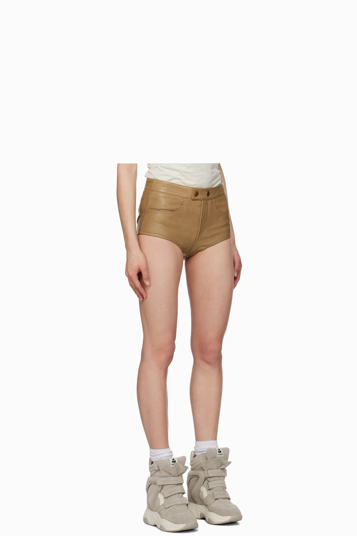 Tan Leslie Leather Shorts