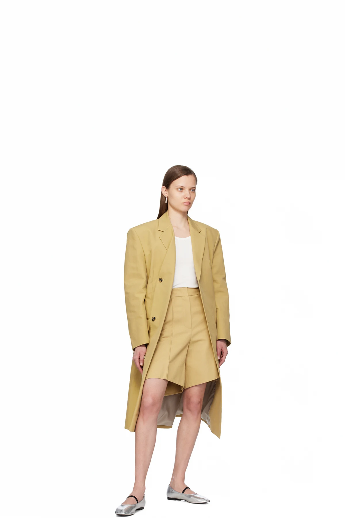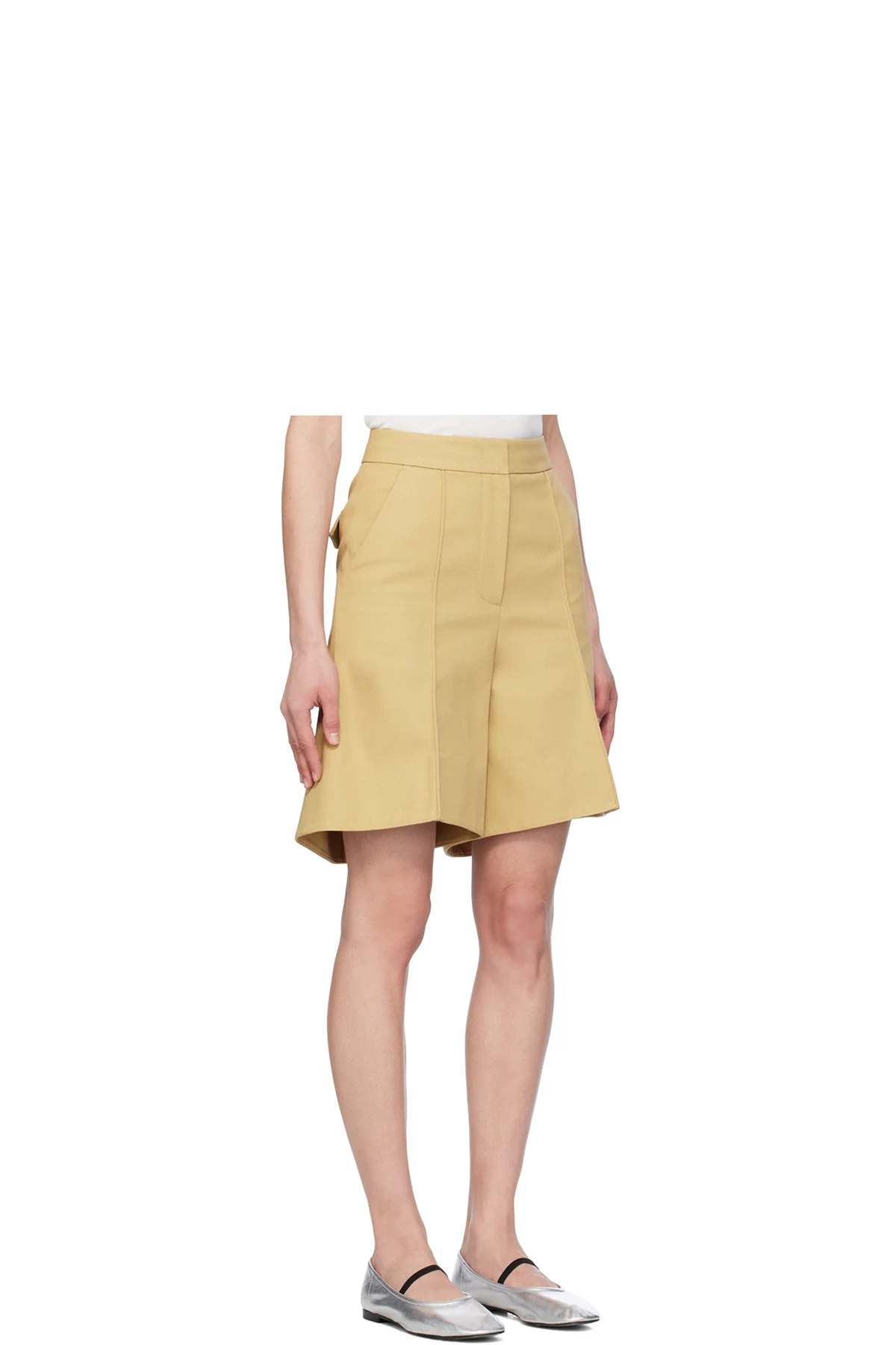 Beige Structured Shorts