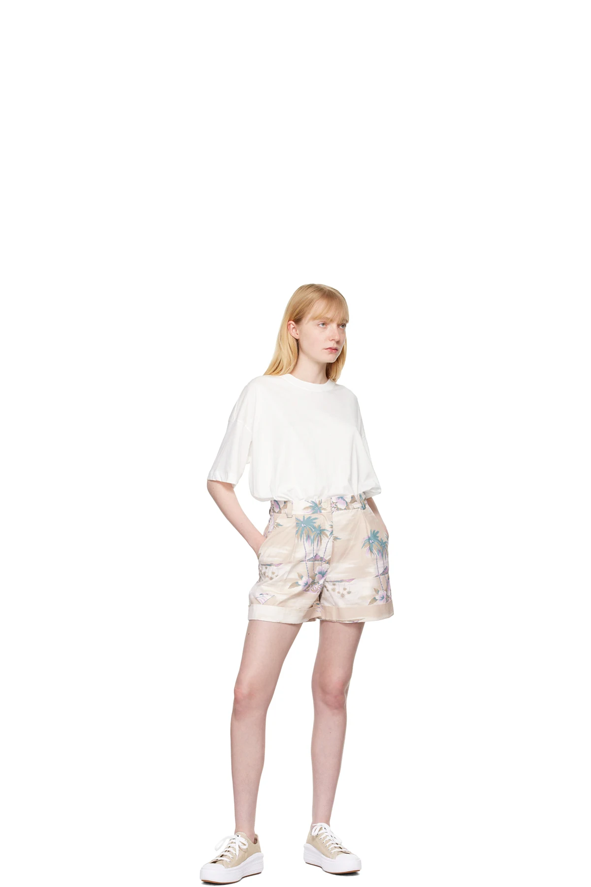 Beige Pleated Shorts