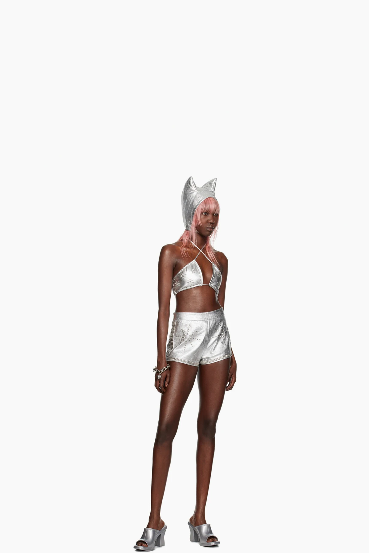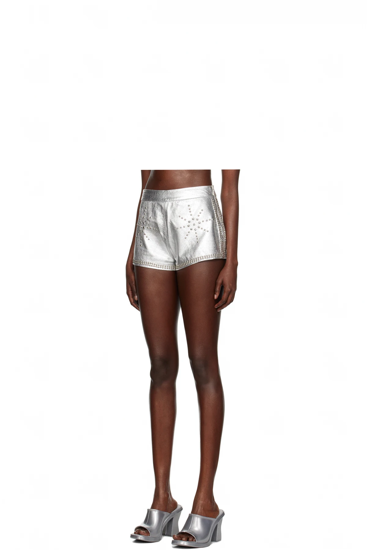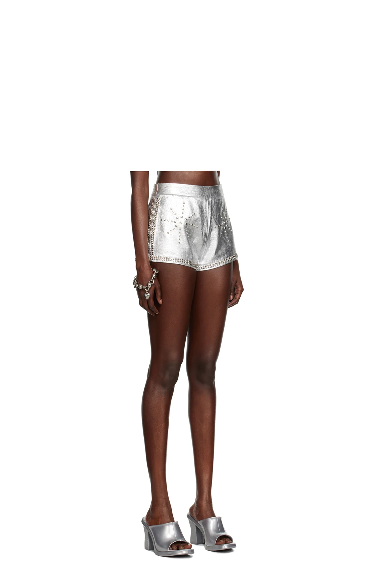 SSENSE Exclusive Silver Mimi Wade Edition Studded Leather Shorts