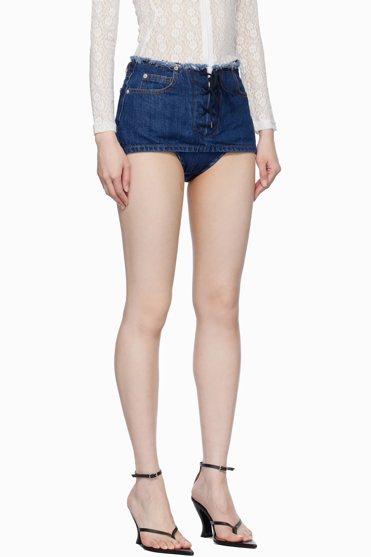 · Exposed lace-up fly