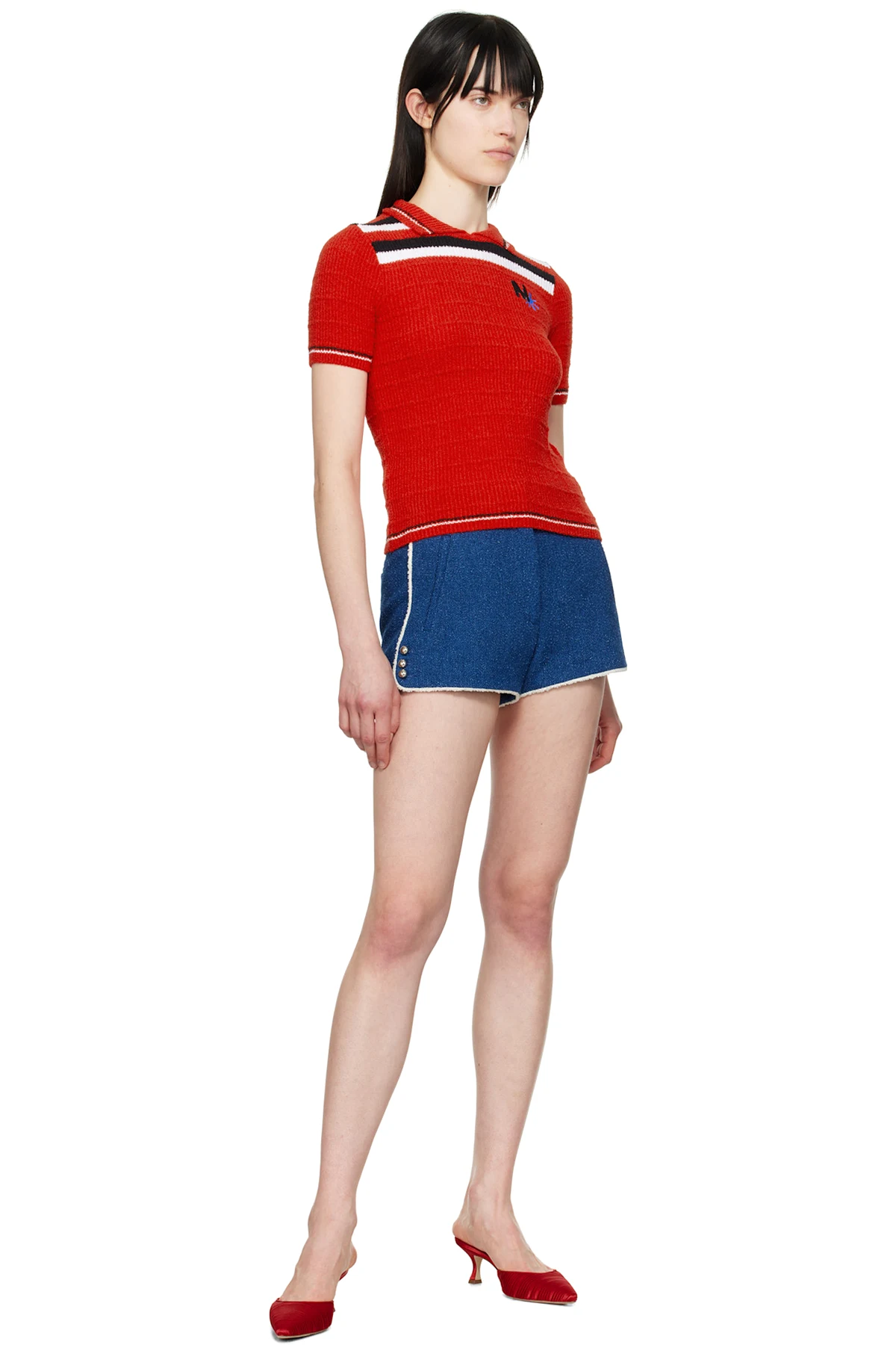 Indigo-dyed textured cotton-blend twill shorts. Piping throughout.