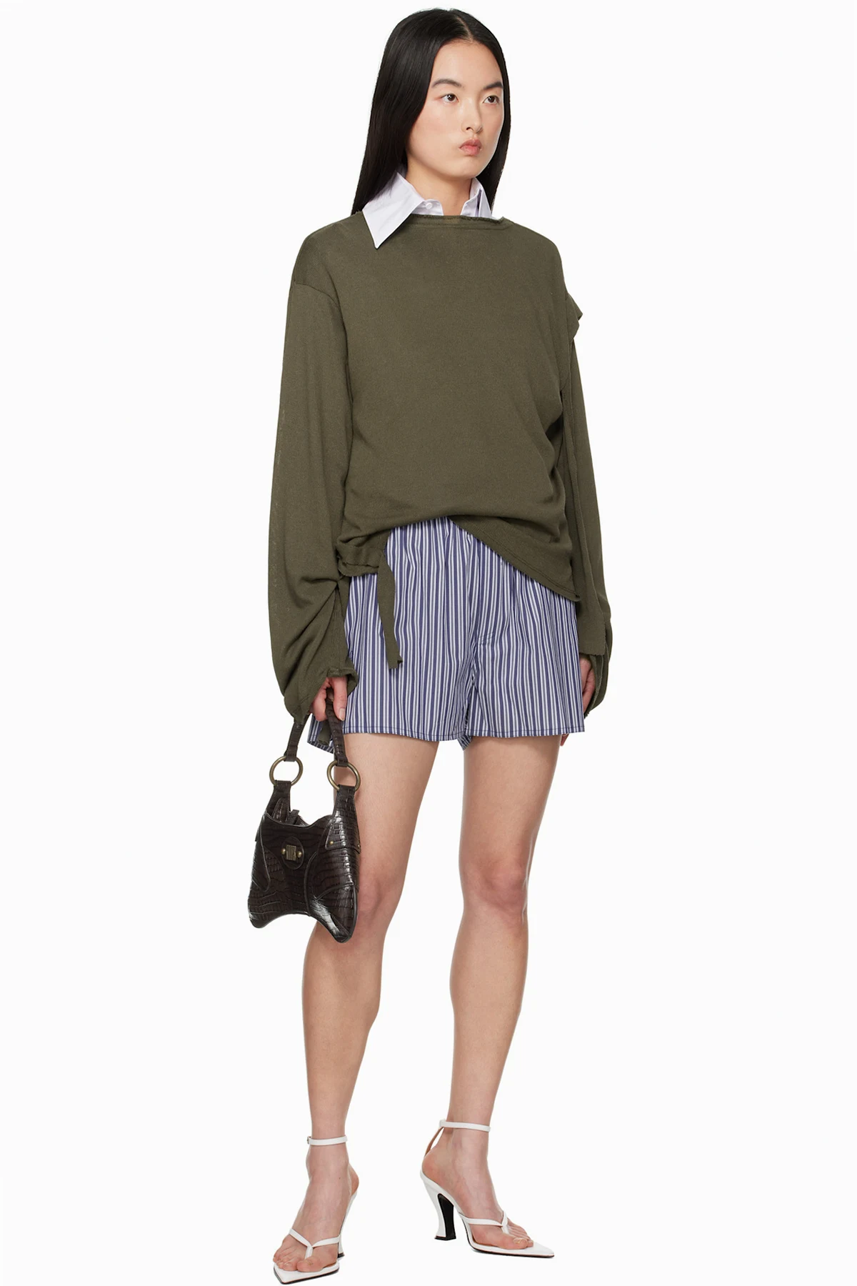 Boxy-fit stretch cotton- and nylon-blend dobby cloth shorts. Stripes throughout.