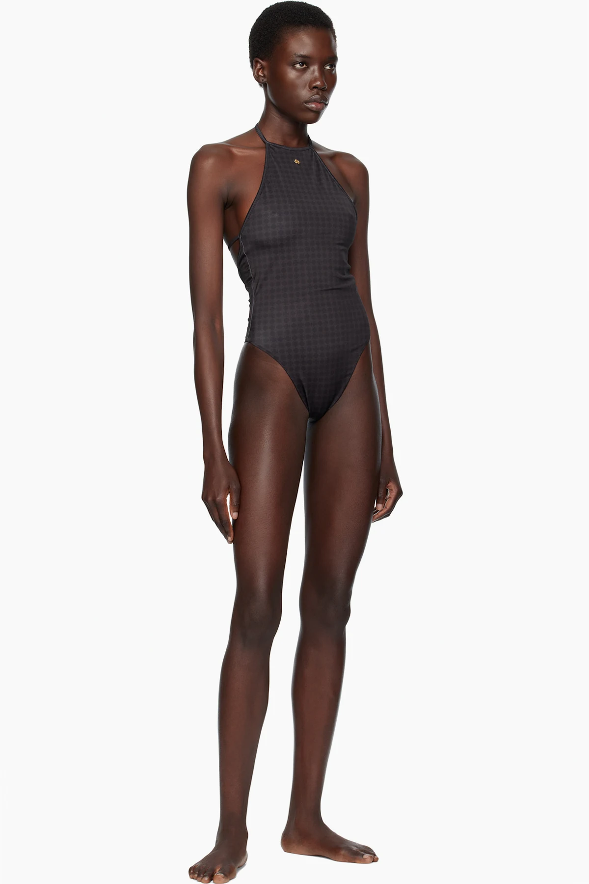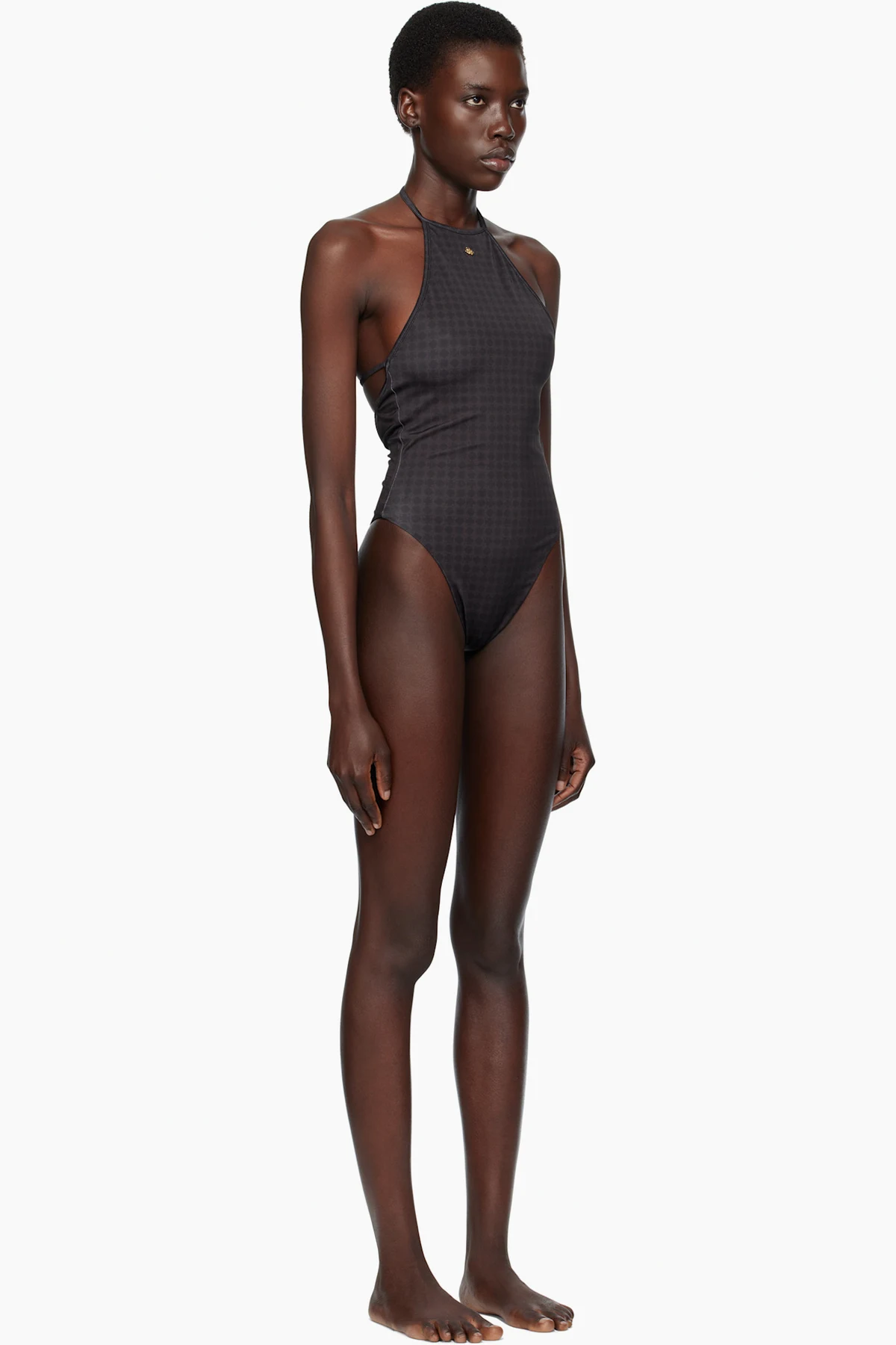 Stretch nylon jersey one-piece swimsuit. Logo pattern printed throughout.