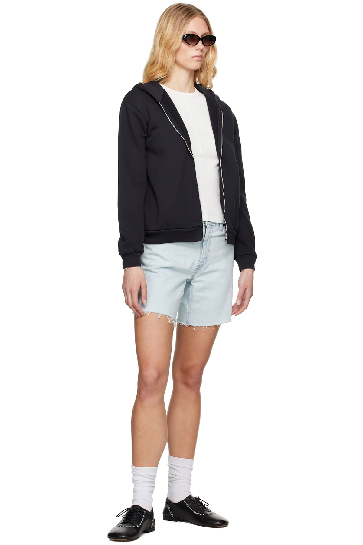Baggy-fit non-stretch denim shorts. Fading throughout.