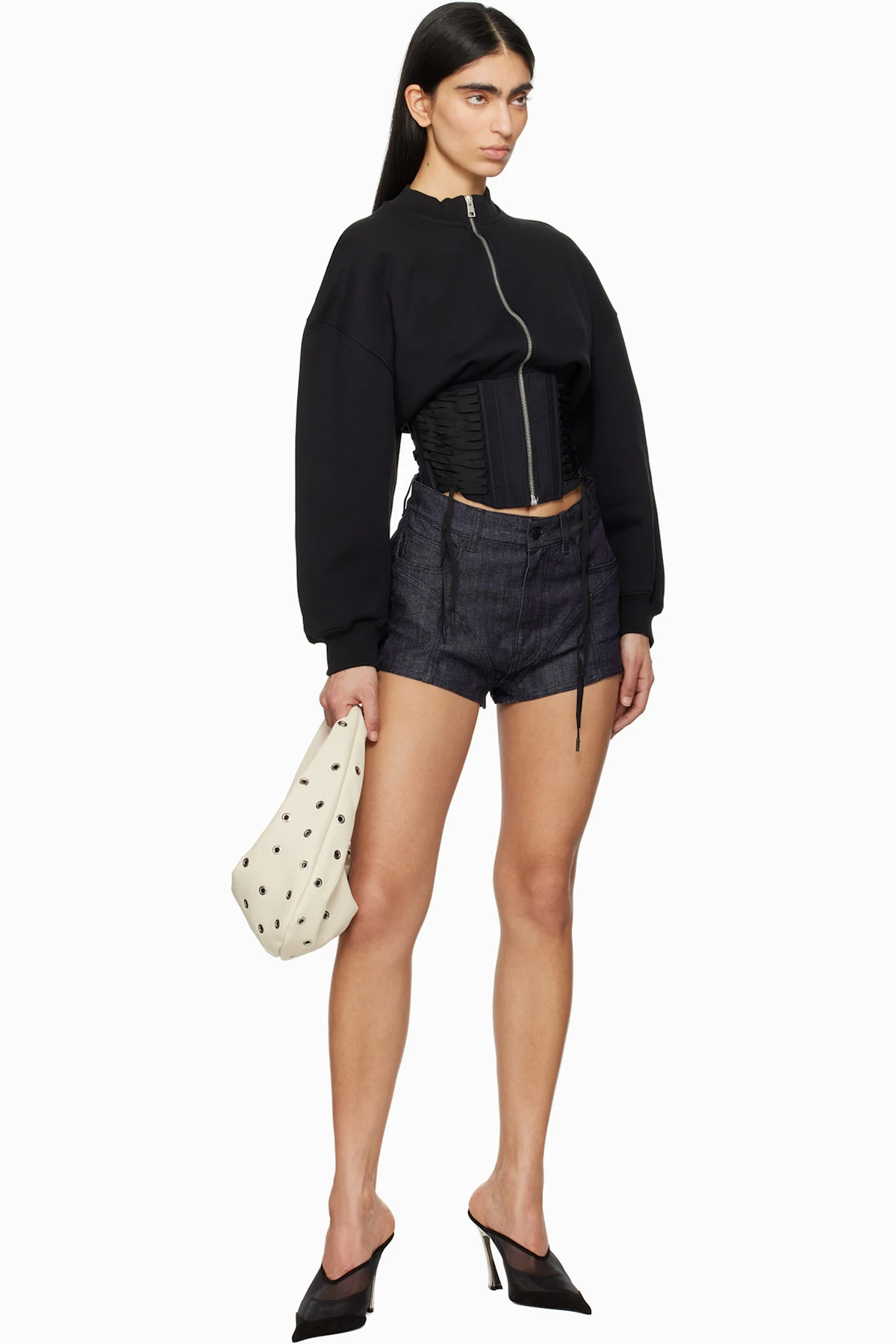Stretch denim shorts. Fading throughout.