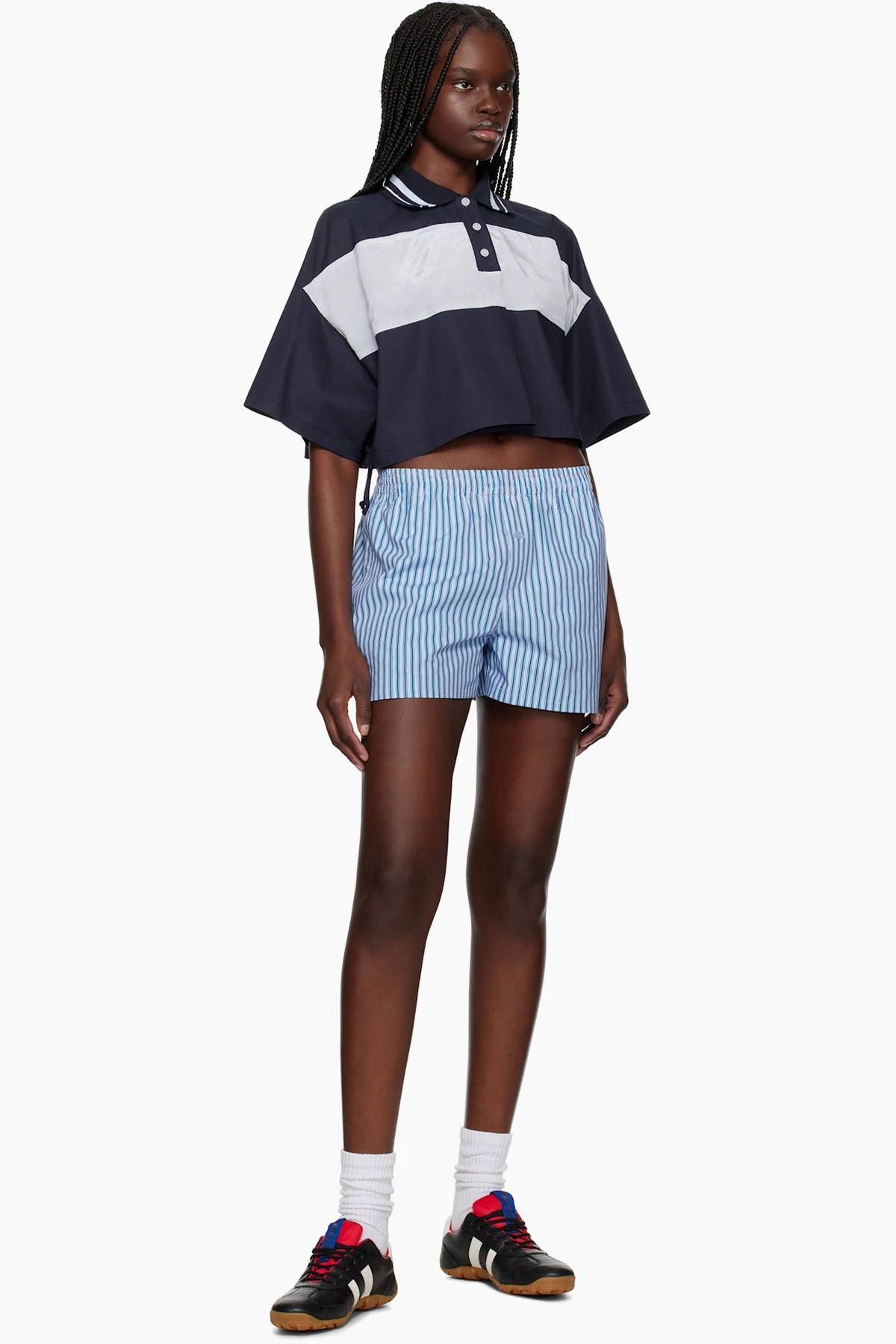 Cotton poplin shorts. Stripes and logo pattern printed throughout.