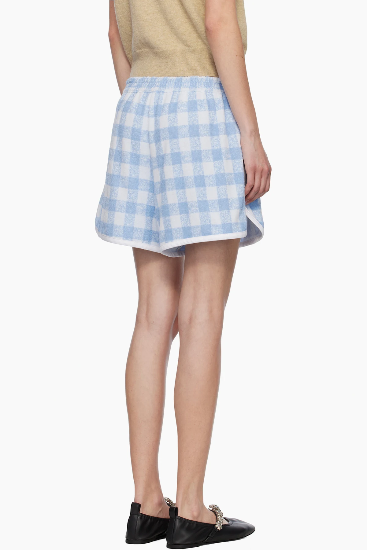 Polyester- and cotton-blend terrycloth shorts. Check pattern throughout.