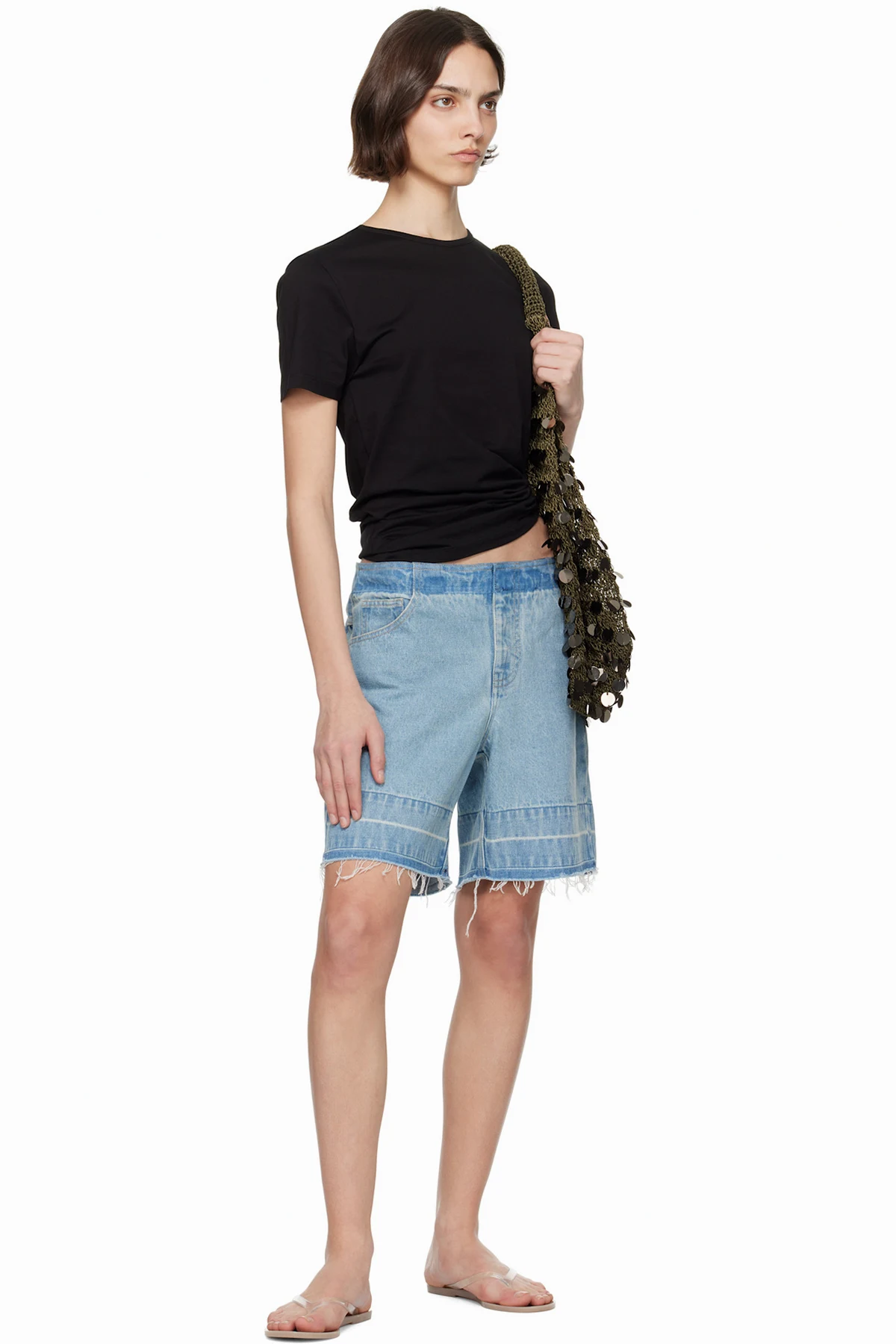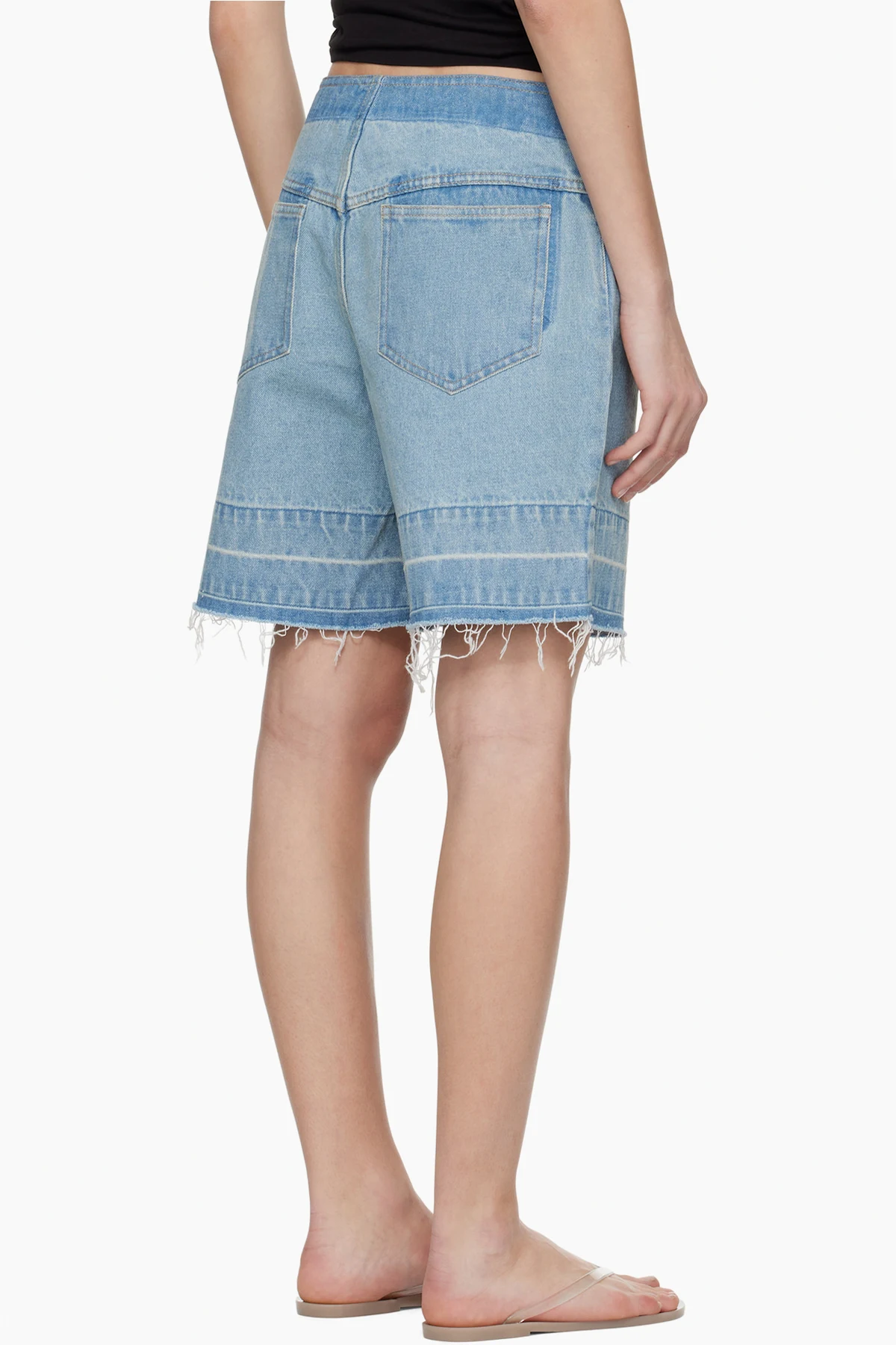 Wide-leg non-stretch denim shorts. Fading throughout.