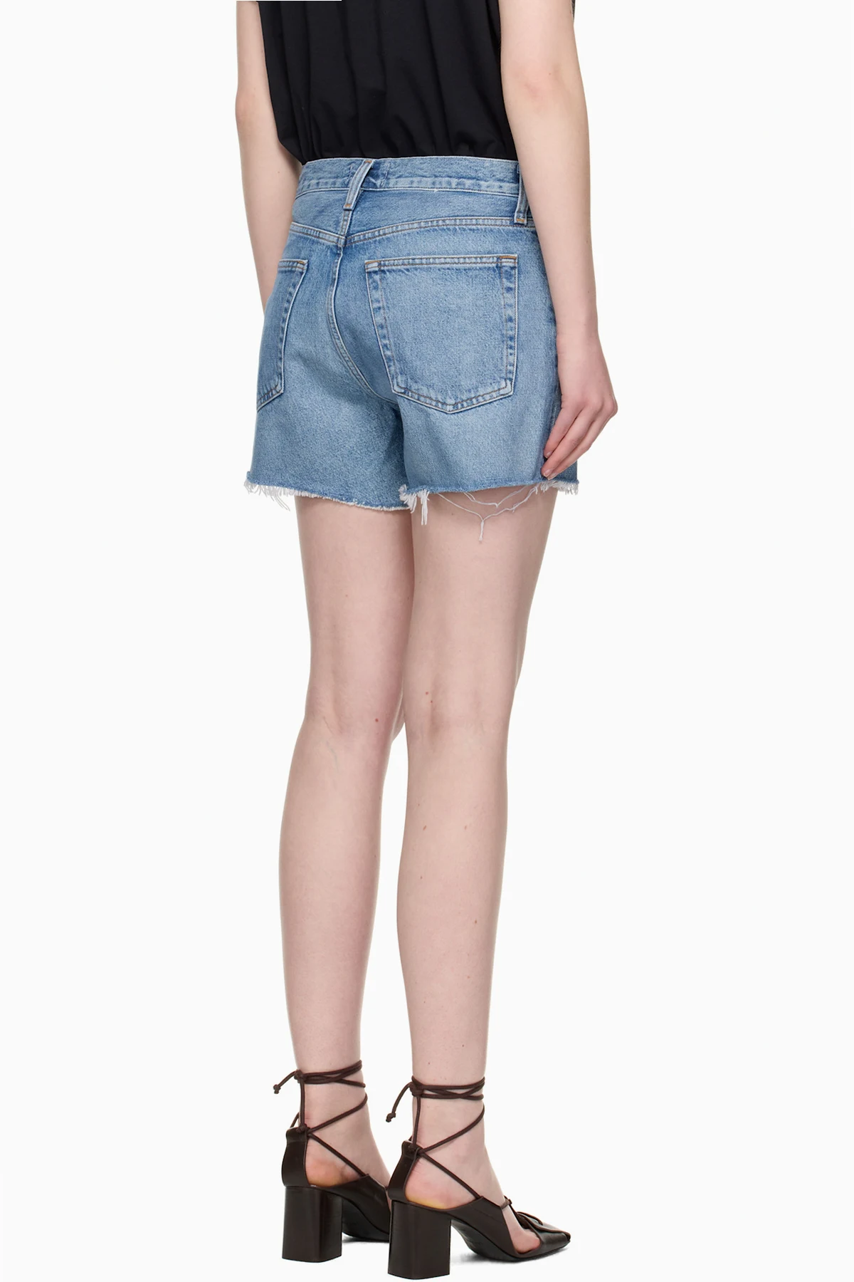 Non-stretch regenerative cotton- and lyocell-blend denim shorts. Fading, whiskering, and subtle distressing throughout.