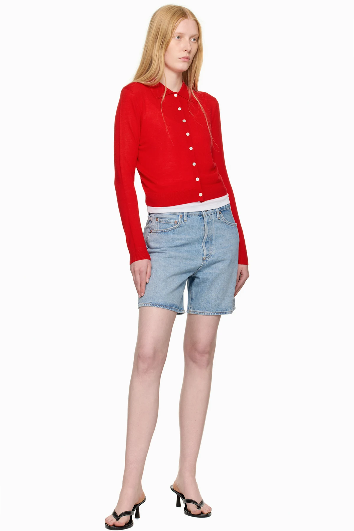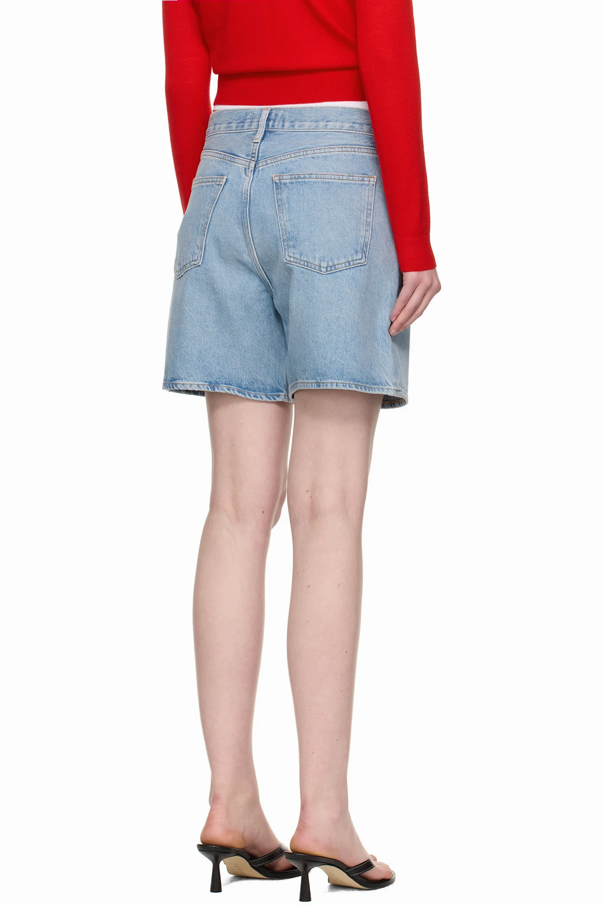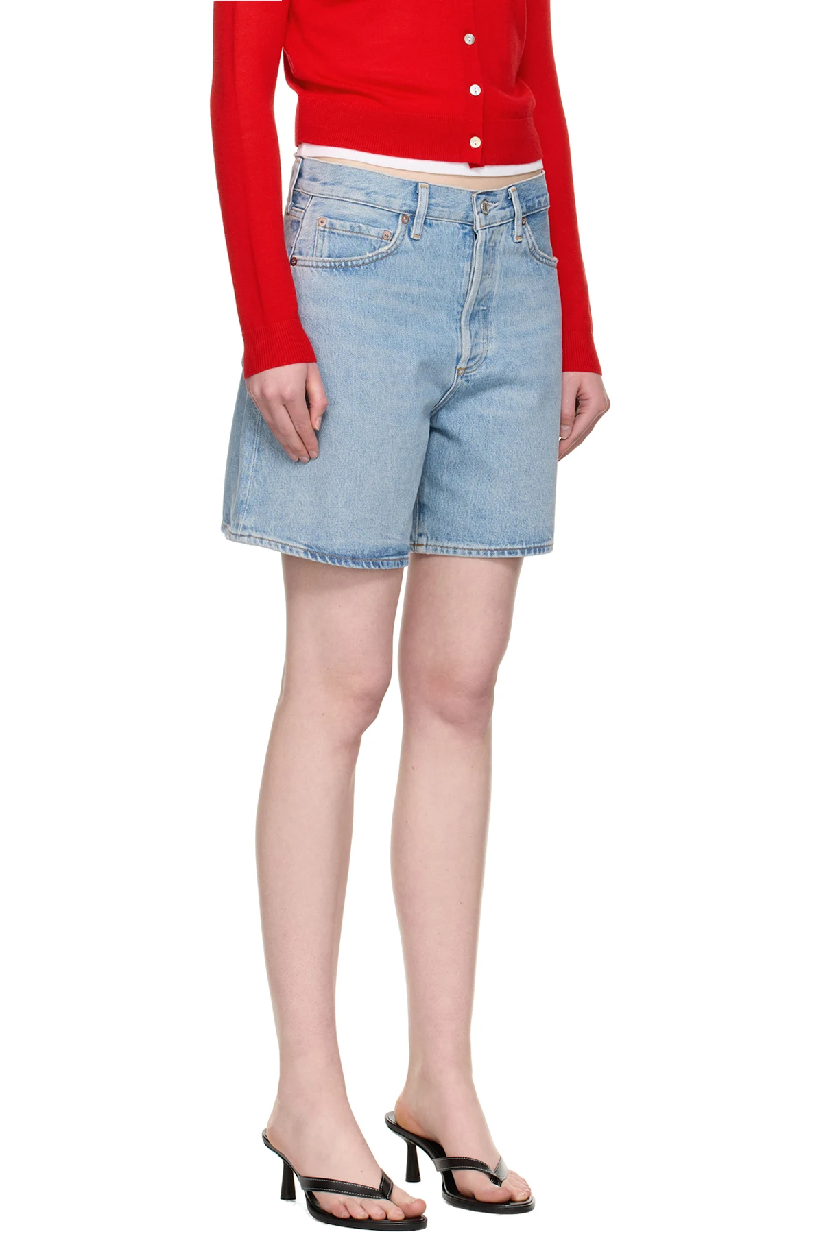 Non-stretch regenerative cotton denim shorts. Fading, whiskering, and subtle distressing throughout.