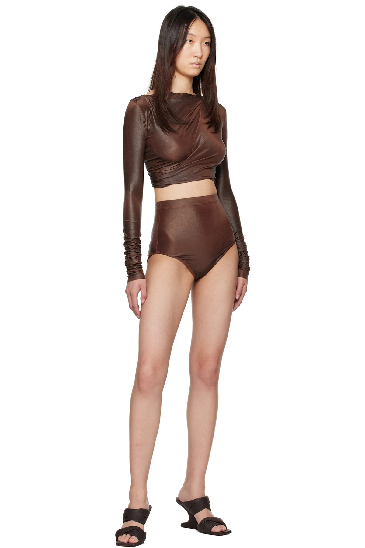 Foil-coated stretch viscose jersey shorts.