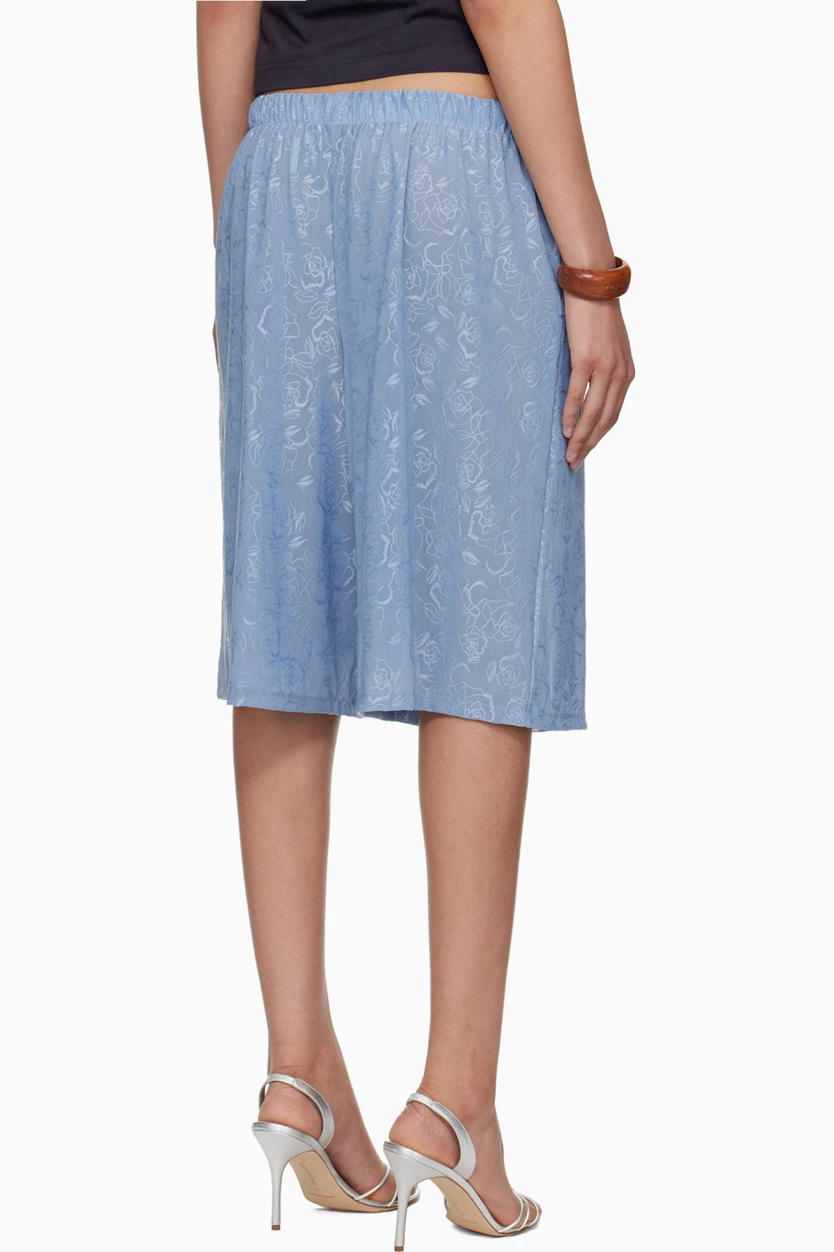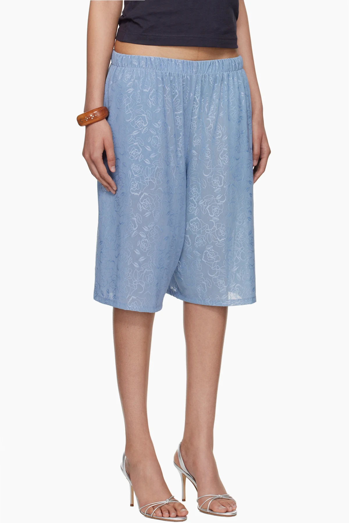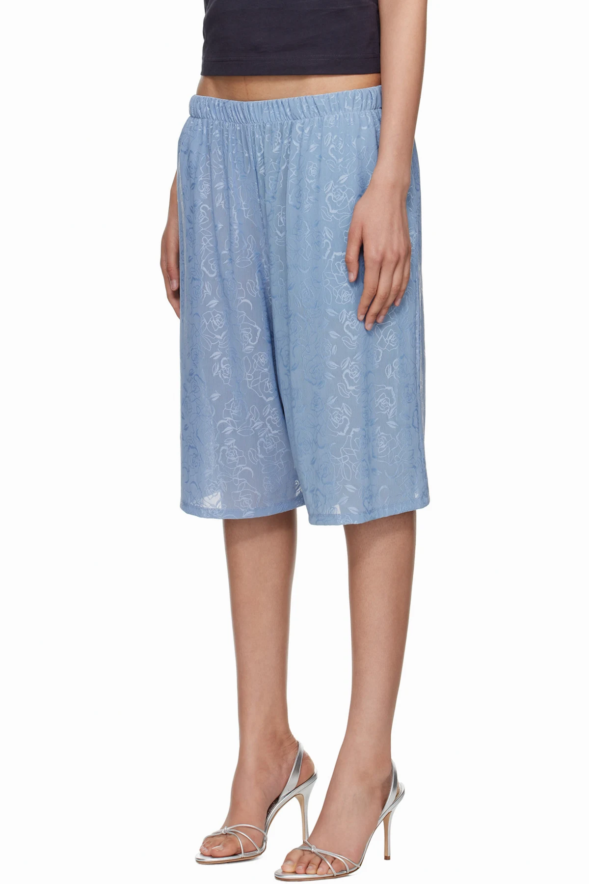 Cotton- and silk-blend mesh shorts. Floral pattern embroidered throughout.