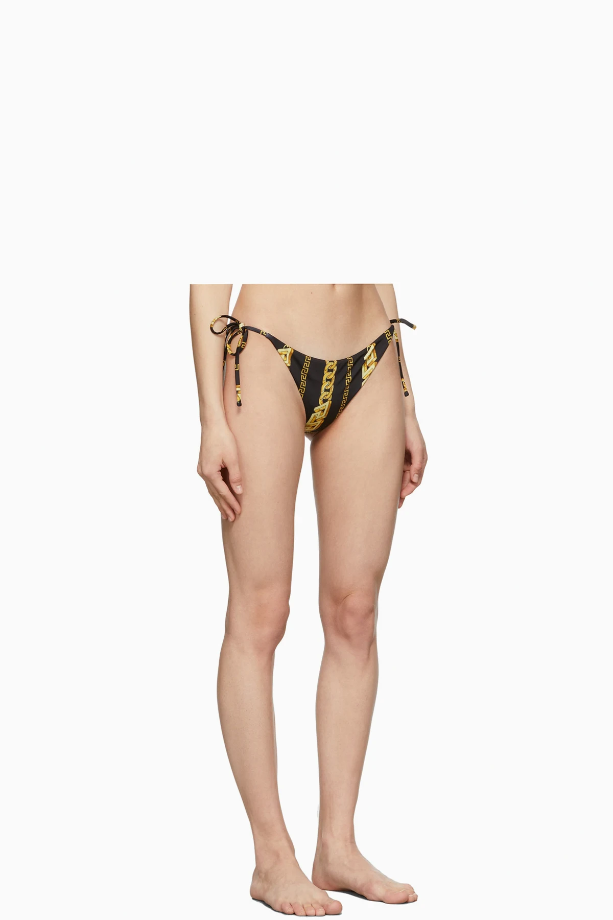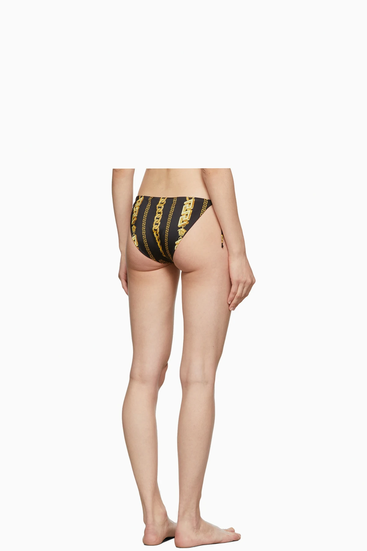 Stretch nylon jersey bikini bottoms in black featuring signature chain pattern in tones of yellow.