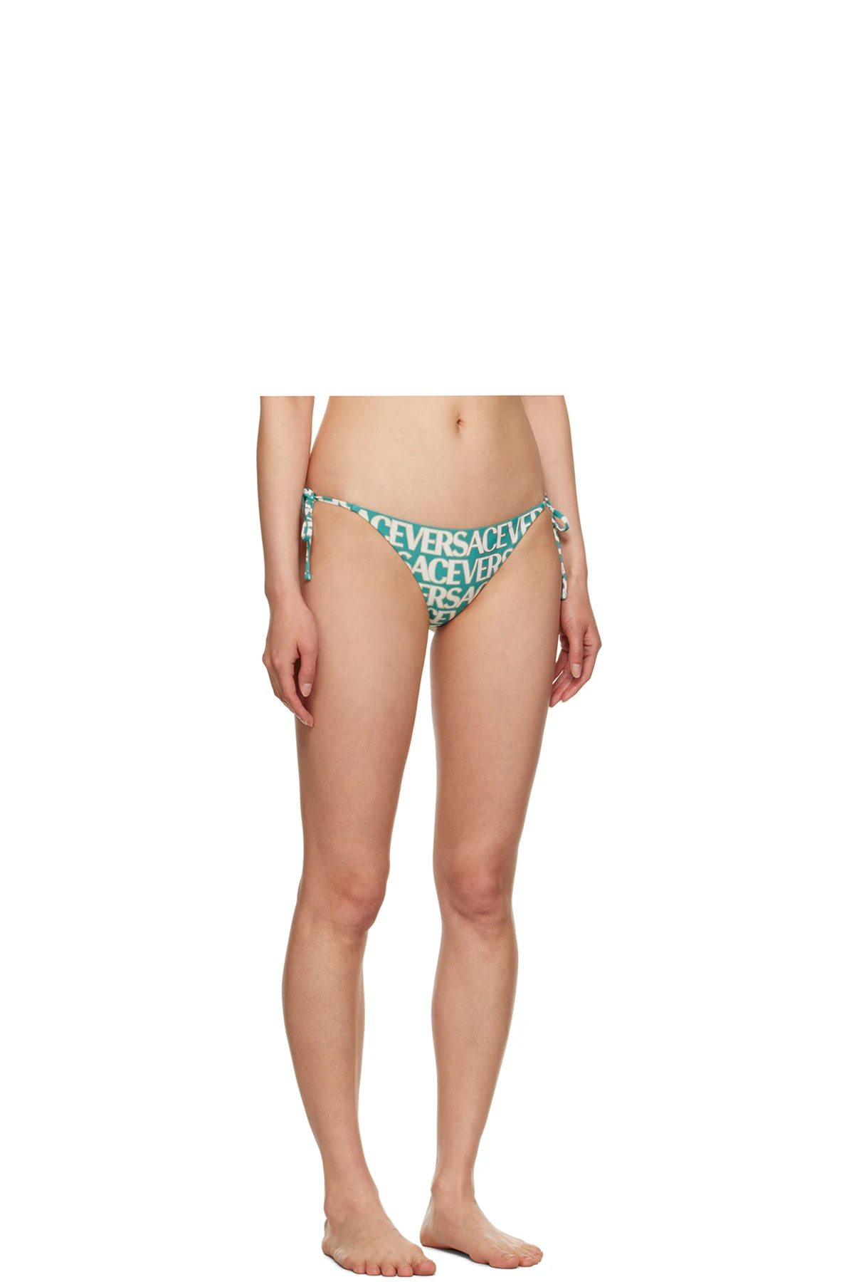Stretch polyester jersey bikini bottom. Logo printed throughout.