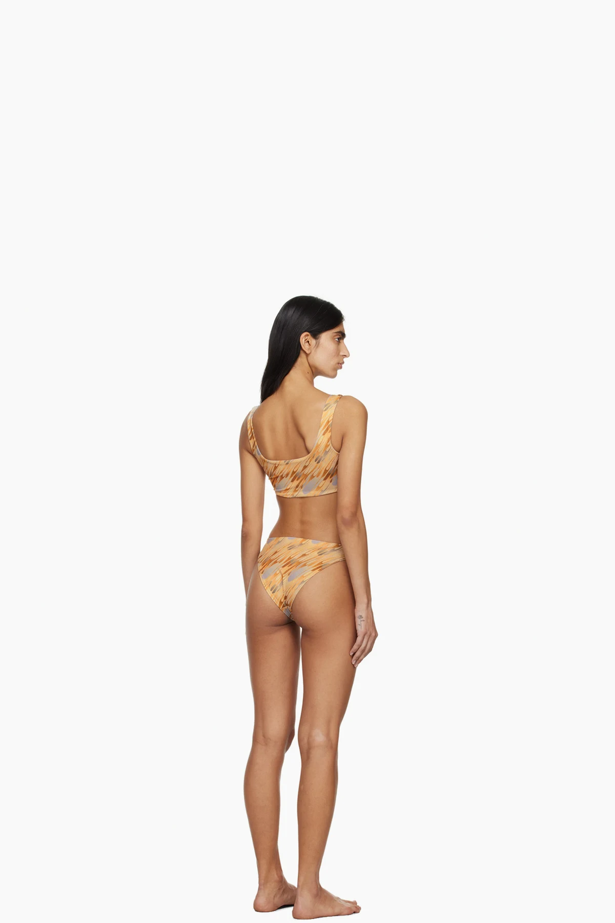 Stretch recycled polyester jersey bikini top. Graphic pattern printed throughout.