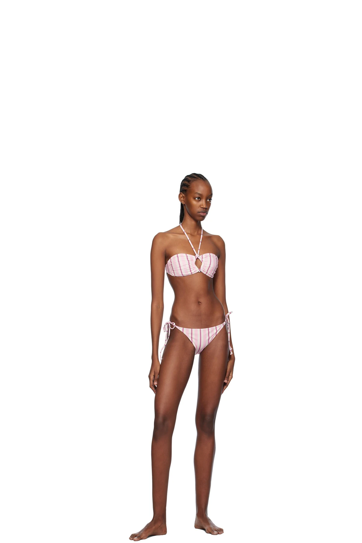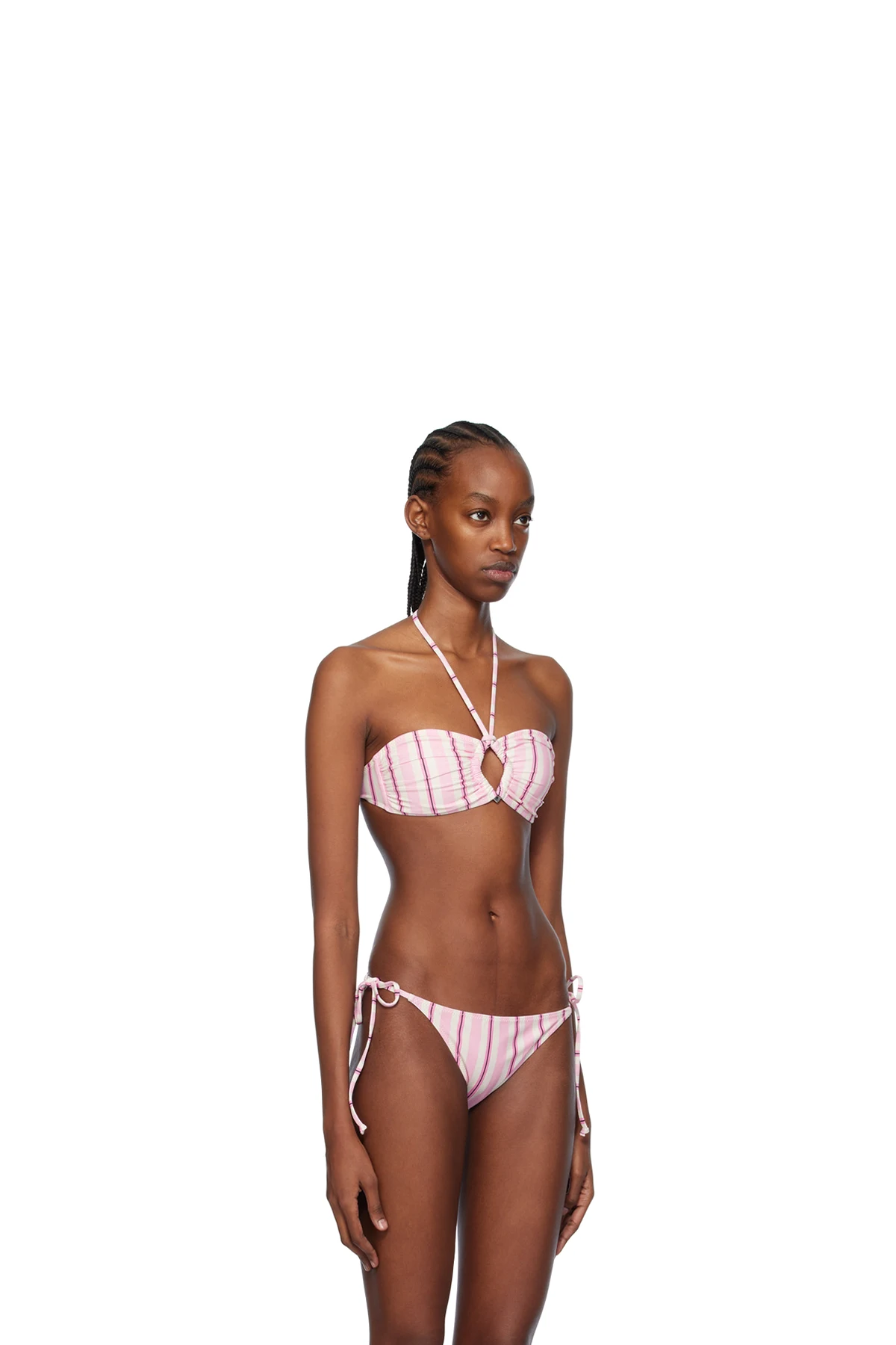 White & Pink Striped Bikini Top