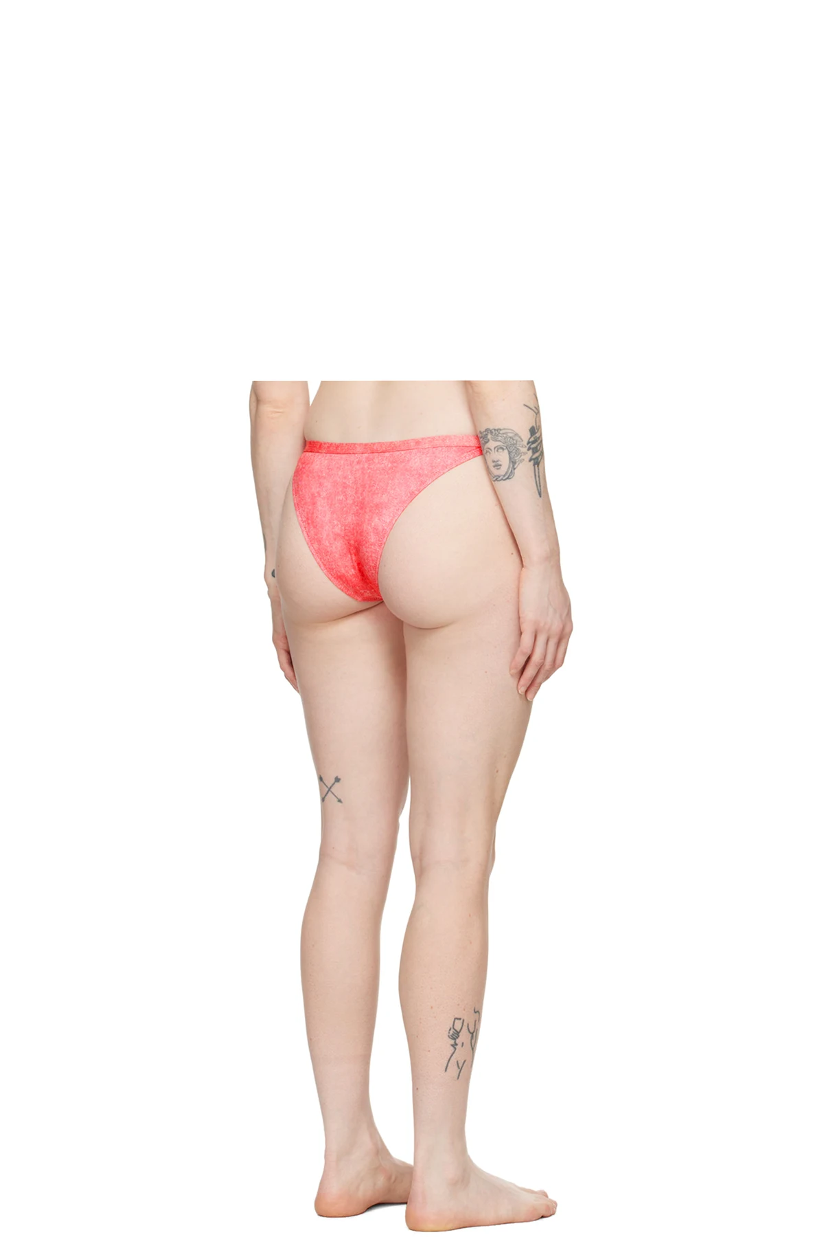 Stretch polyester jersey bikini bottom. Trompe l'oeil denim effect printed throughout.