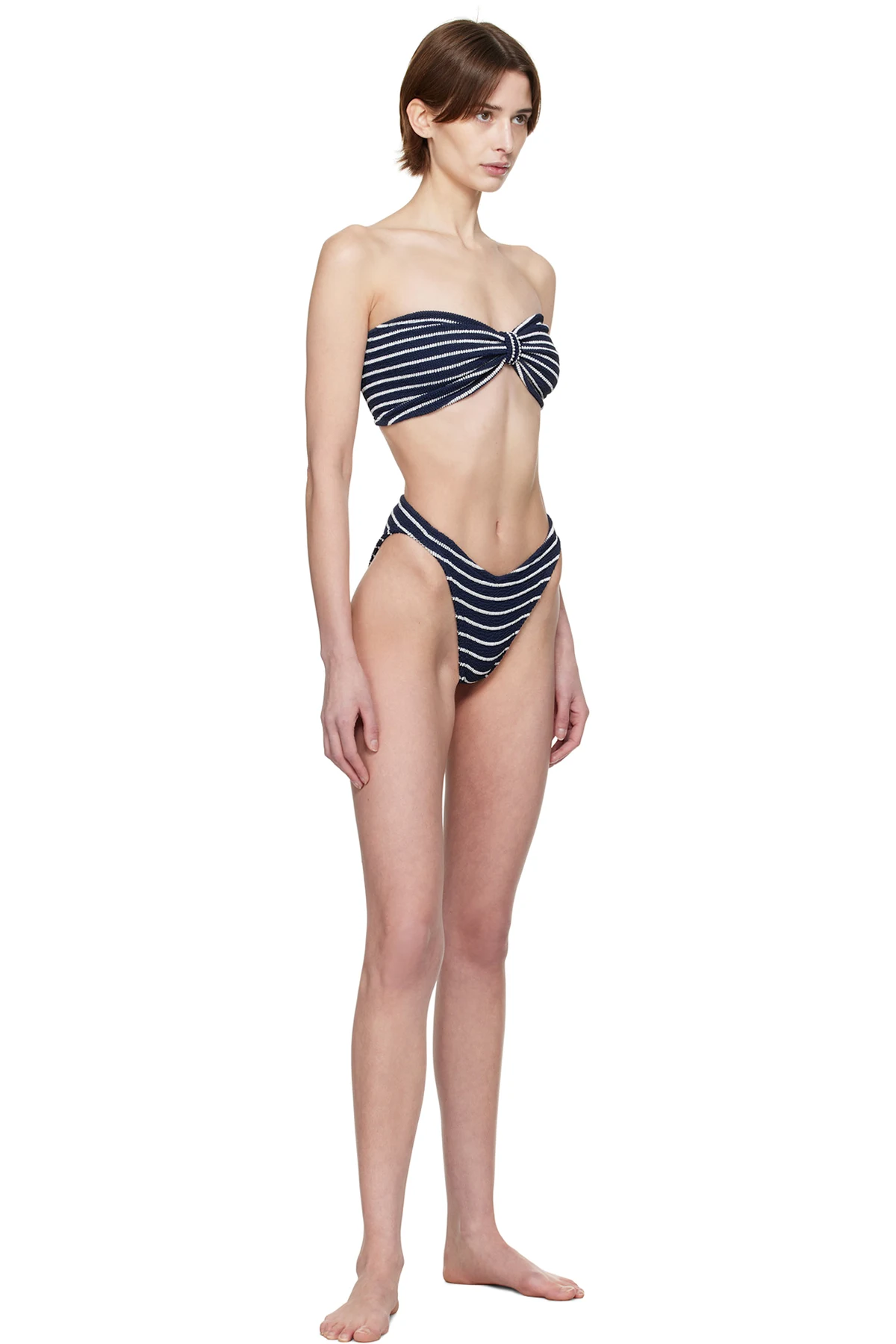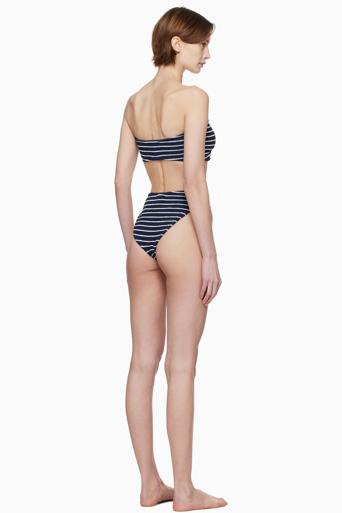 Shirred stretch nylon jersey bandeau-style bikini top. Stripes throughout.