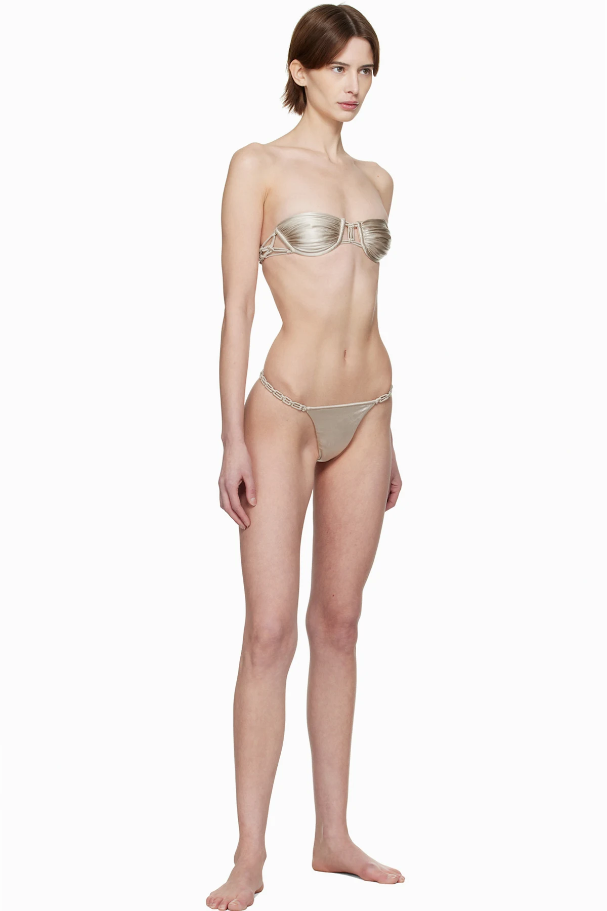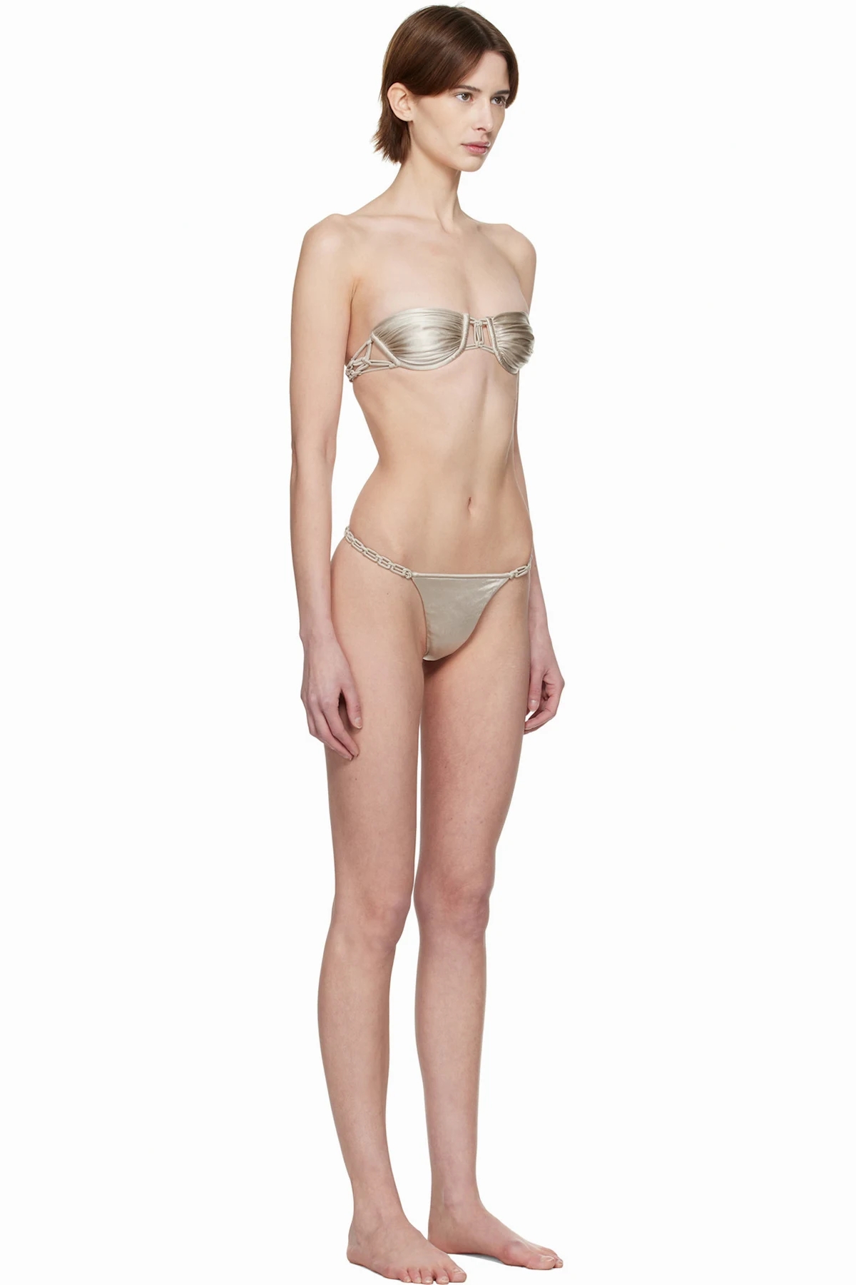 Stretch nylon sateen bikini top. Braided trim throughout.
